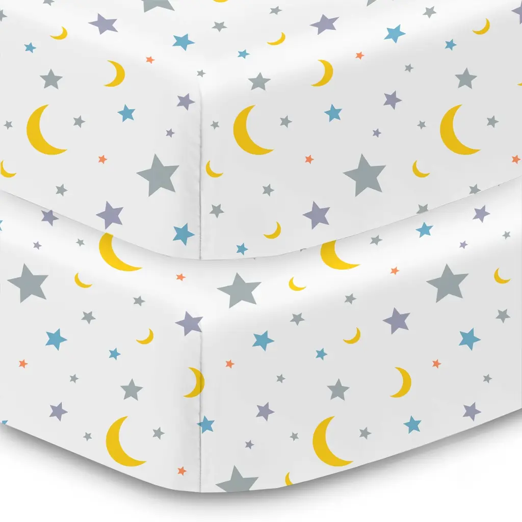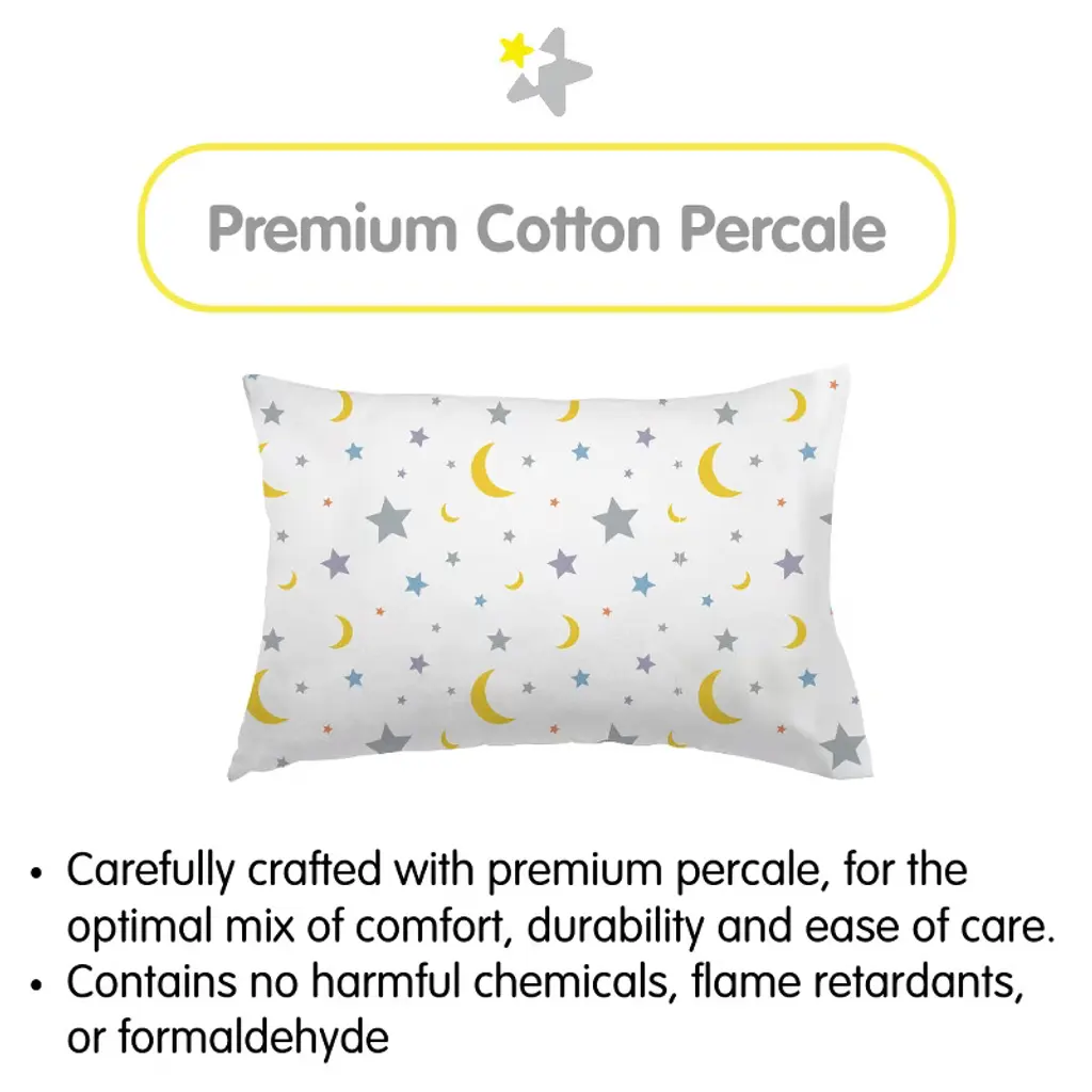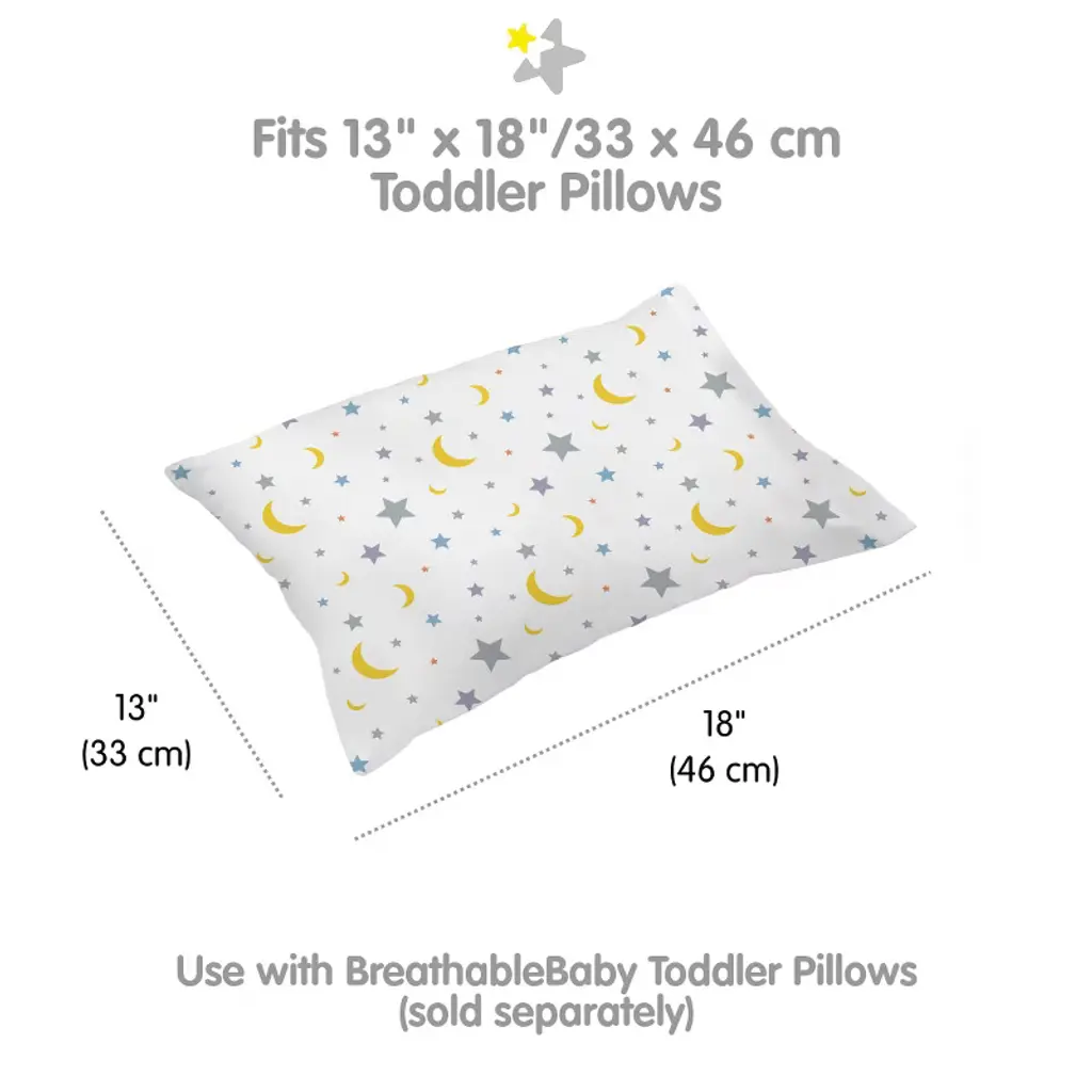 Breathablebaby Cotton Percale Pillowcase, For 13" X 18"/33 X 46 Cm Toddler Pillow, Moons & Stars (2-pack)