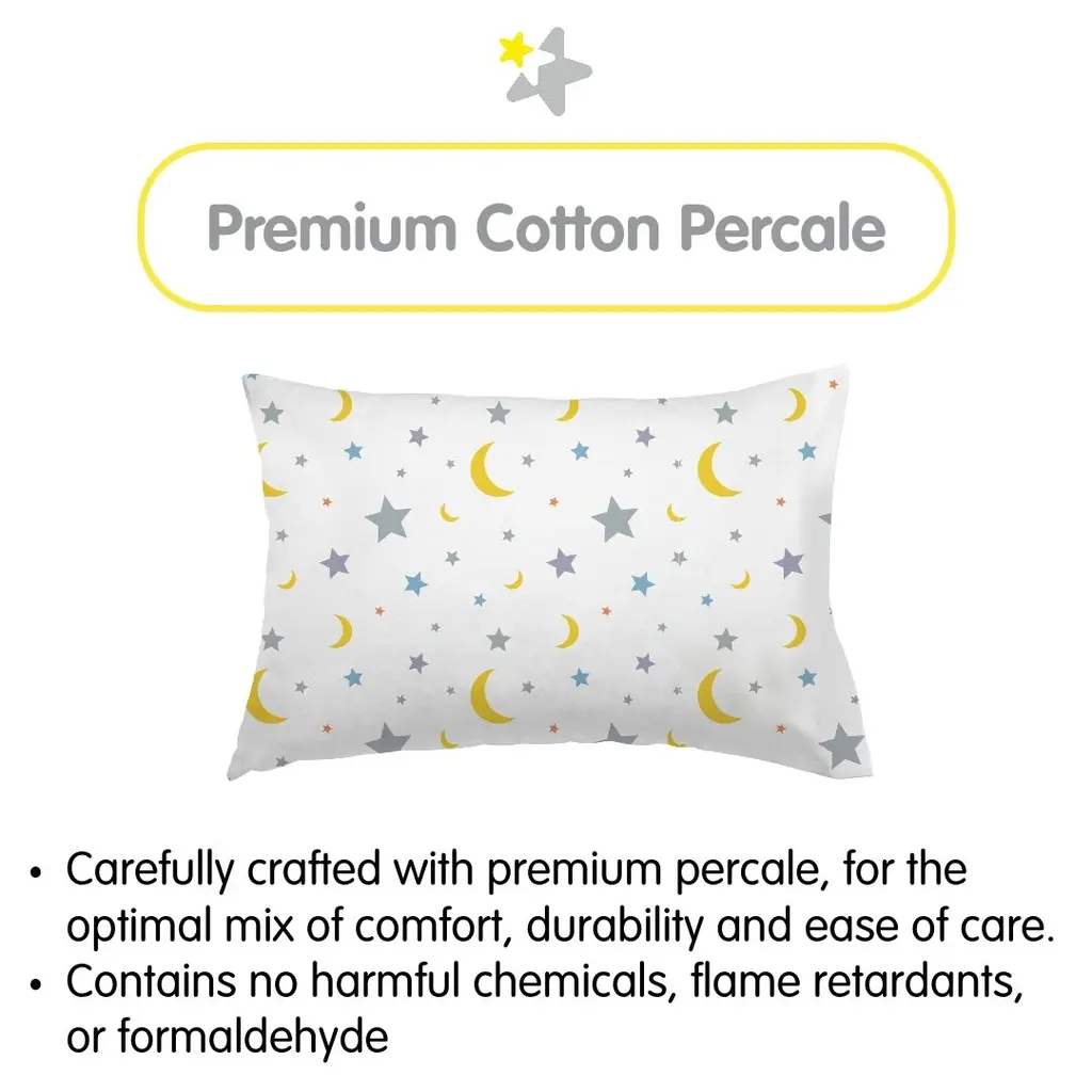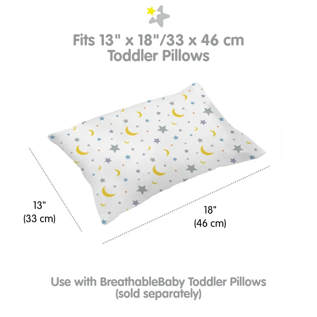Breathablebaby Cotton Percale Pillowcase, For 13" X 18"/33 X 46 Cm Toddler Pillow, Prints (2-Pack) - Moons & Stars