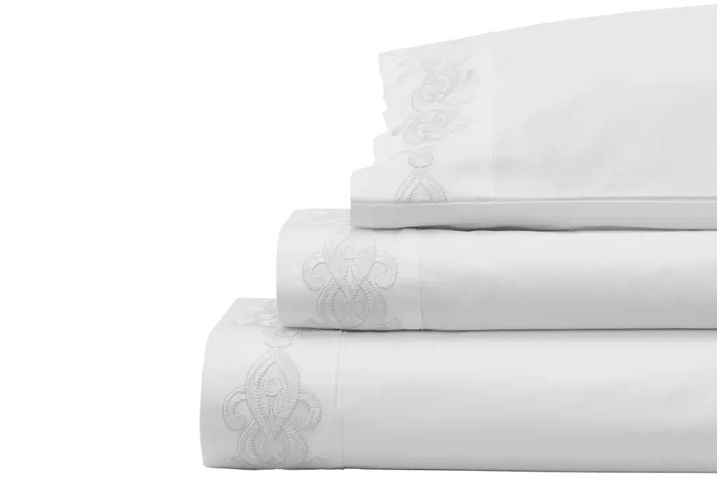 Combining the fresh softness of Brenna and the crisp elegance of long-staple cotton, the 300-thread-count percale, this bedding collection features a classic cable embroidery for timeless refinement and style.