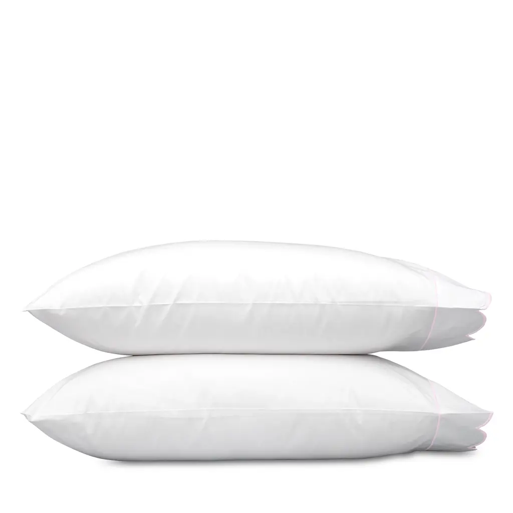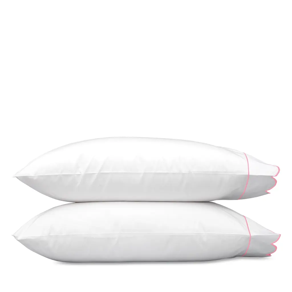 Matouk pairs fabrics of superlative quality with embroidery and couture-level detail to create luxurious bedding and linens. Matouk's rich history of old world techniques and passion for innovation infuses refinement into every collection. Crafted in crisp cotton percale, the Butterfield collection sheets feature sweet scalloped trim with tailored contrast satin stitching on the cuff of the flat sheet and pillowcases.
