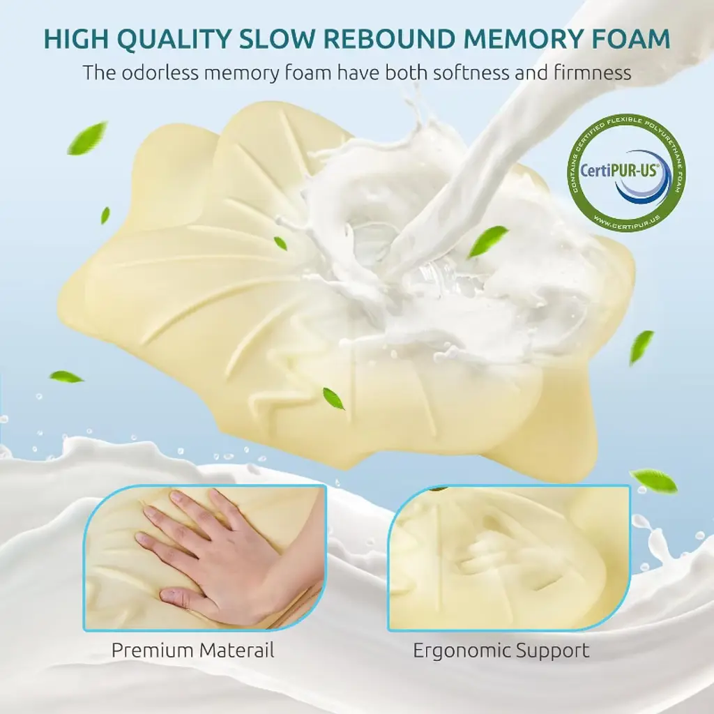 Pick out a great pillow, you may find your sleeping quality improves unexpectedly. Our contour cervical memory foam pillow is an ergonomically designed pillow with a unique curve design that can evenly distribute pressure according to the sleeping postures and firmly support the head, neck and shoulder. Help you get a relaxing sleep, refresh your body.