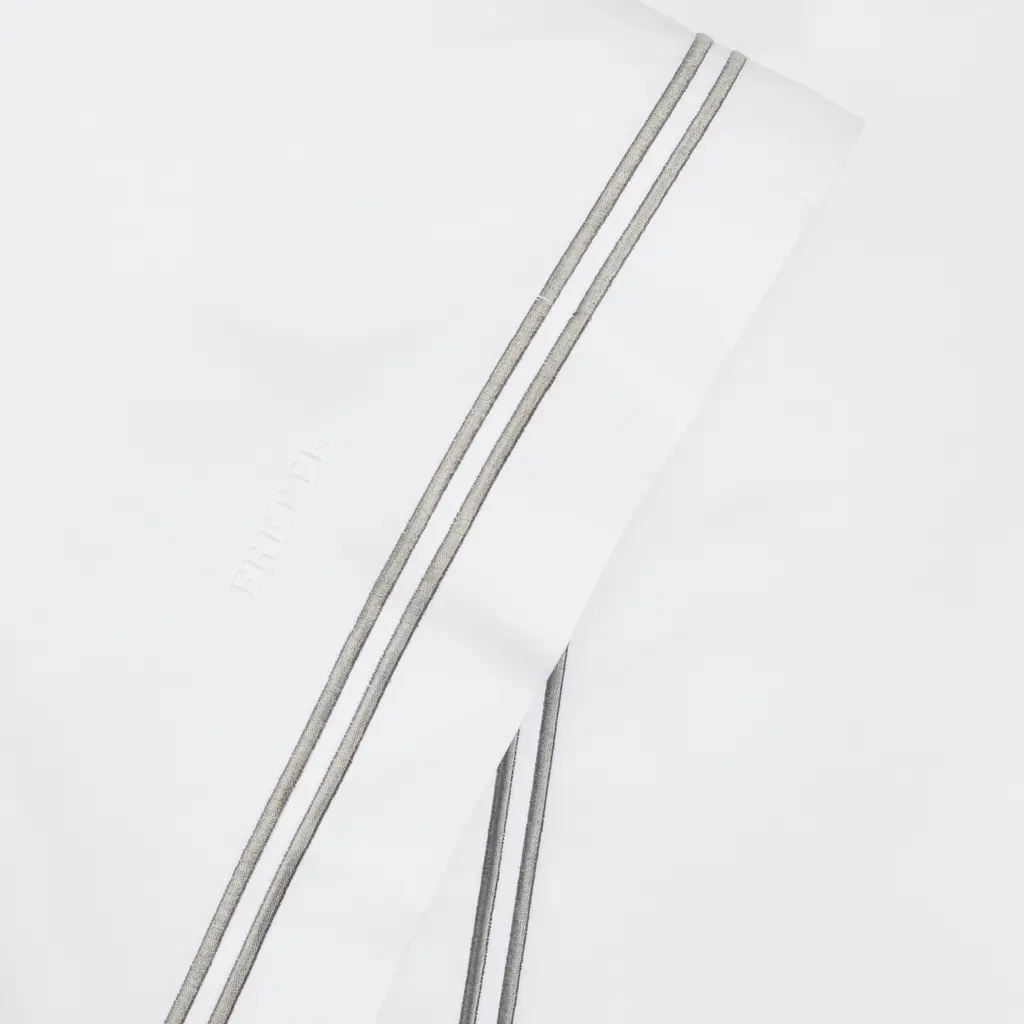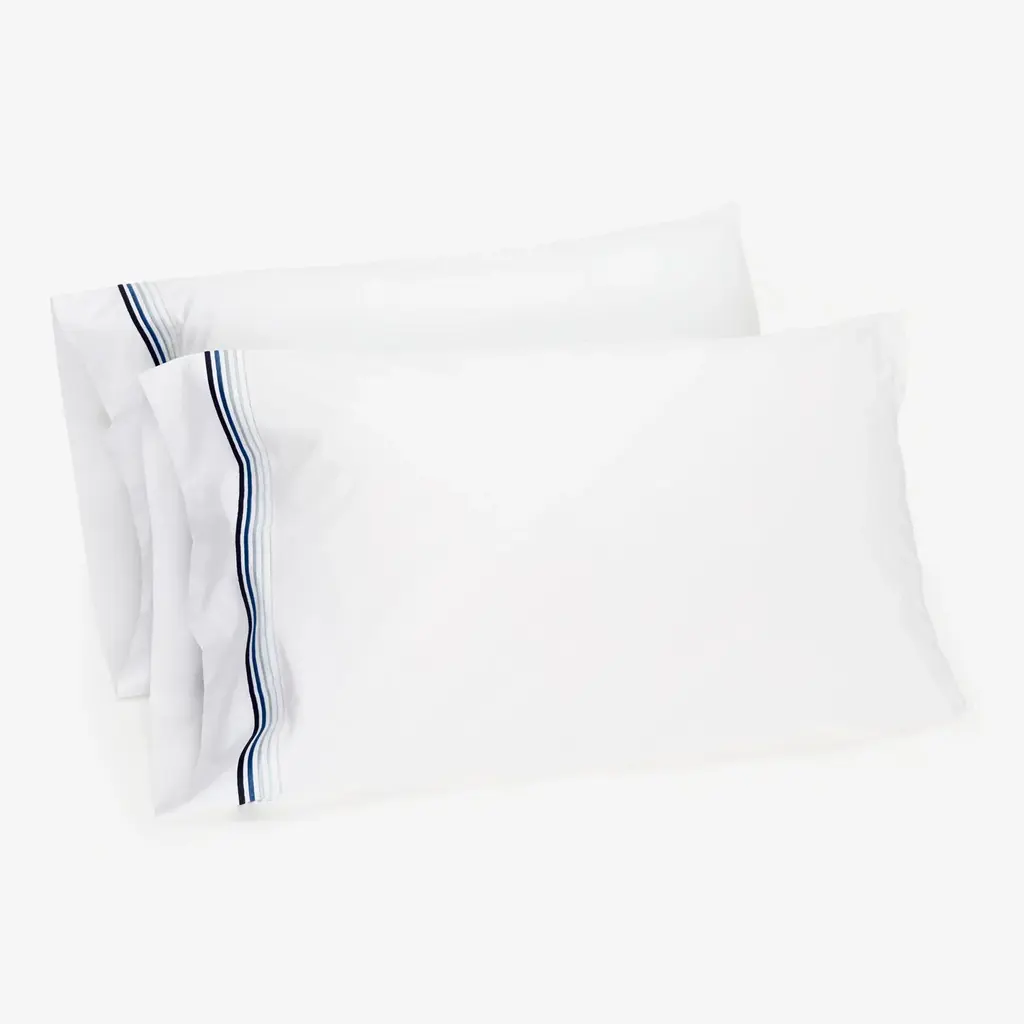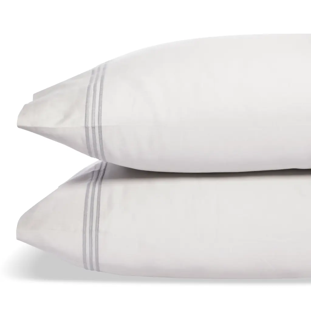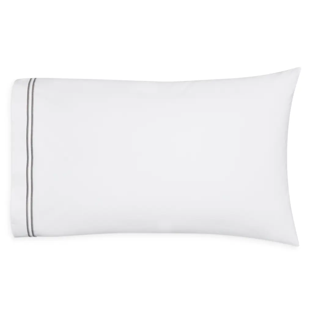 These luxurious Egyptian cotton percale sheets by Frette feature double rows of rich embroidery along the borders of the flat sheets and pillowcases for understated yet elegant touches of color.