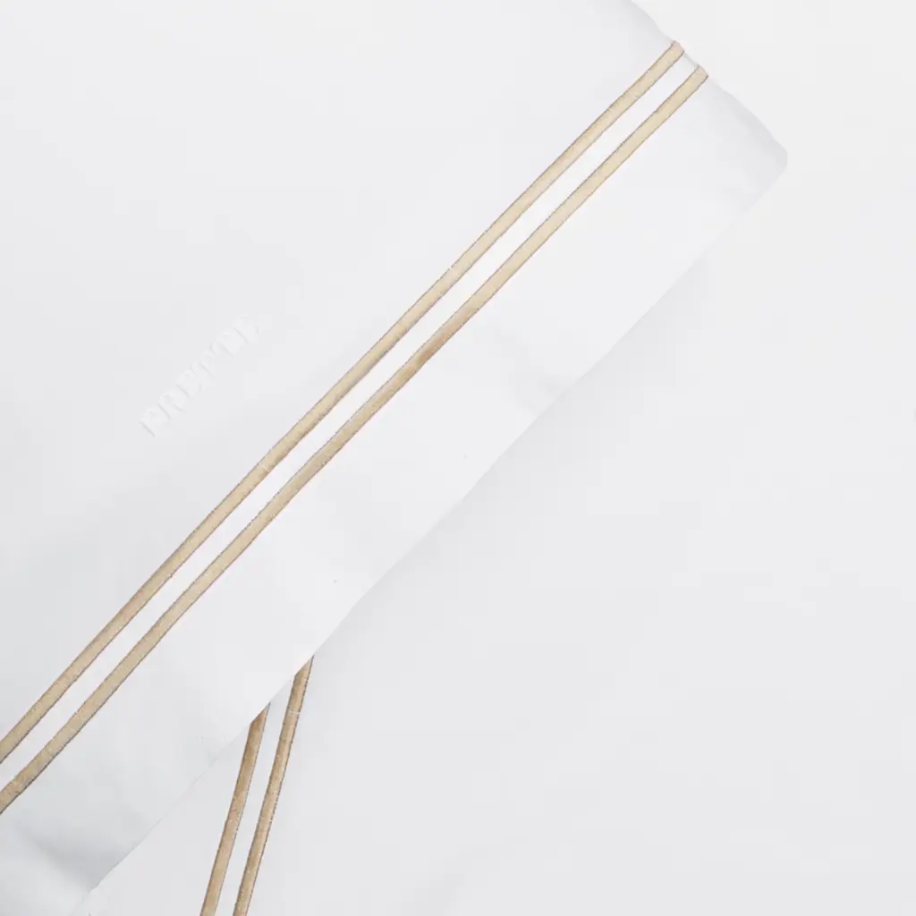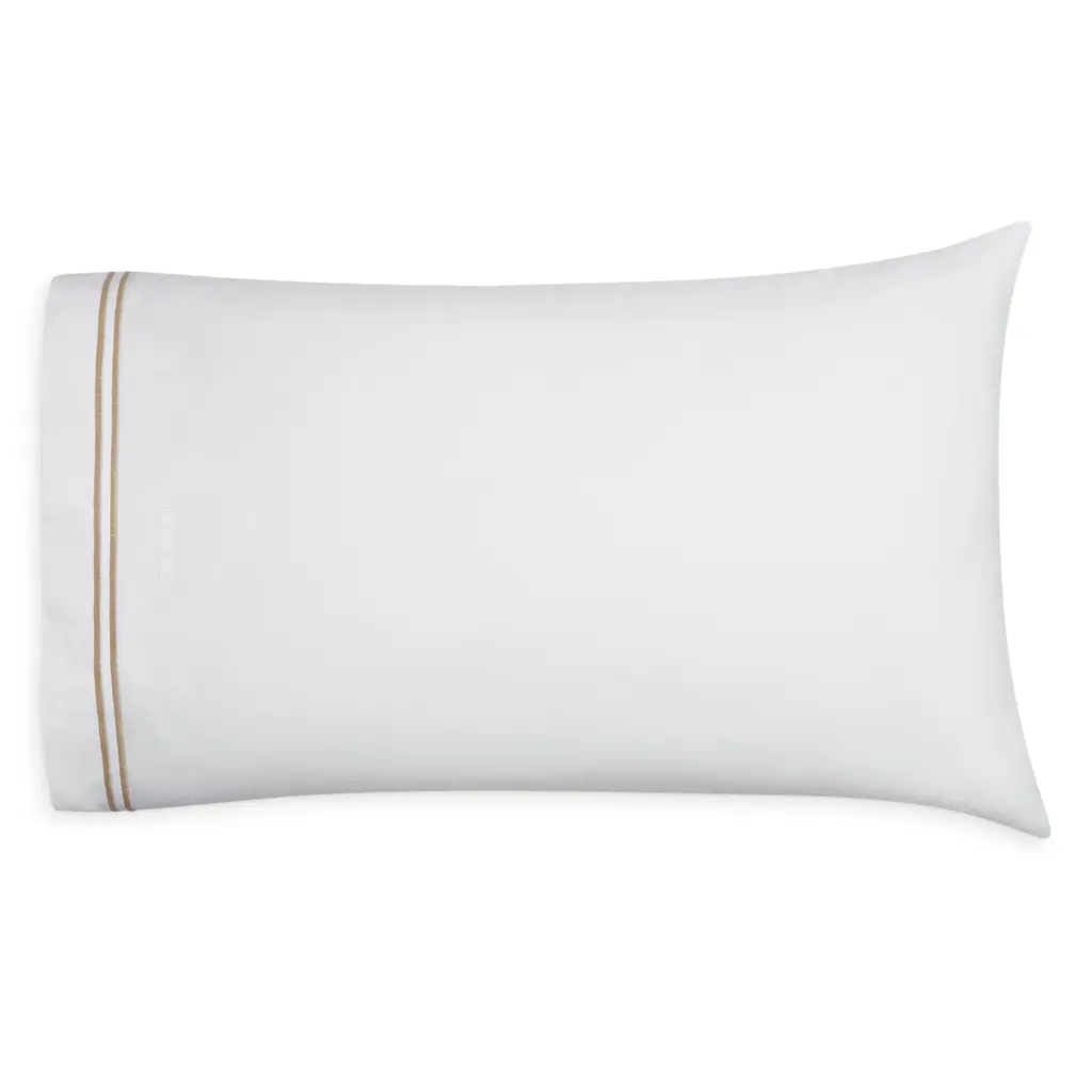 These luxurious Egyptian cotton percale sheets by Frette feature double rows of rich embroidery along the borders of the flat sheets and pillowcases for understated yet elegant touches of color.