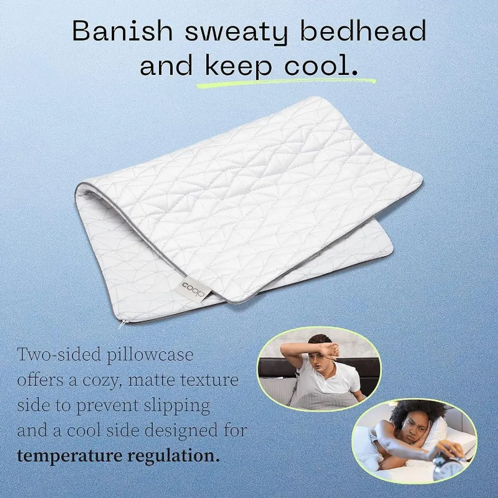 The ultimate cooldown designed with Lulltra Cool technology, the Cool Side Pillowcase is cool to the touch and, best of all, keeps its cool. This means you don't have to toss and turn all night flipping over your pillow anymore, phew!Chill out all nightOffering maximum breathability, the cooling jacquard fabric will transform the feeling of any pillow. Meanwhile, the reverse side of the pillowcase has a cozy, matte texture to prevent the pillow from slippin' and slidin'.Banish sweaty bedheadLet's bring down that temperature. We recommend sleeping directly on the pillowcase for the optimal cooling effect. You'll enjoy nothing but peaceful nights ahead.