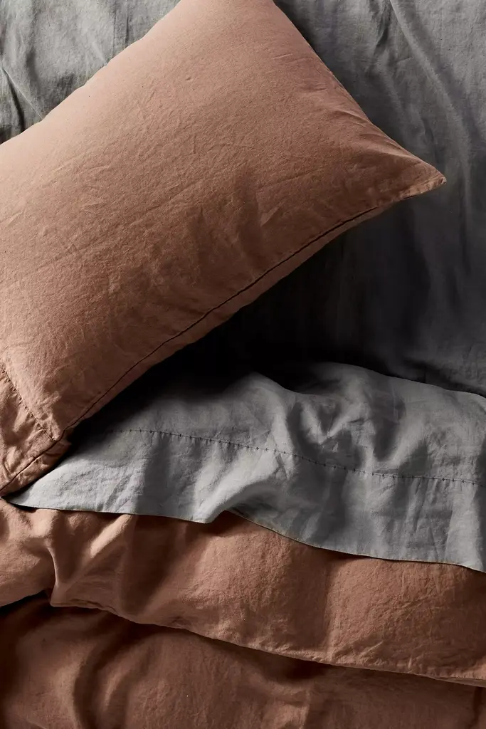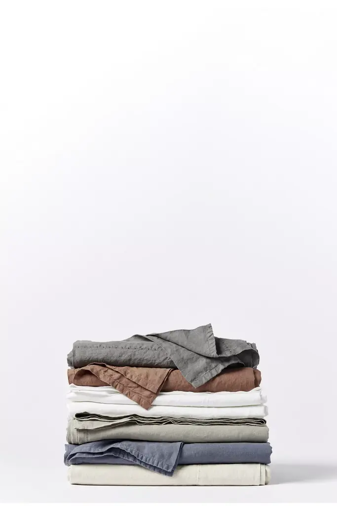 Woven to a sturdy weight and garment washed for a relaxed hand, these sheets are durable enough to dress the bed year-round and are destined to become more supple with every wash. Color-matched pick stitching lends subtle detail to the cuffs, while a deep 15" pocket and full elastic ensure an easy fit on a range of mattress styles.Coyuchi produces high-quality linens from minimally processed natural and organic fibers in responsible and ethical factories. With a relaxed palette inspired by the coast, Coyuchi products are crafted without compromise to design, comfort or the planet. * 100% Organic Linen* Machine washable. Wash on delicate cycle with like colors, cold water and a plant based detergent. Whiteners not recommended. Only use non-chlorine bleach. Line dry or tumble dry low. * Imported#### *Dimensions** Standard/Queen: 20" x 32"* King: 20" x 40"