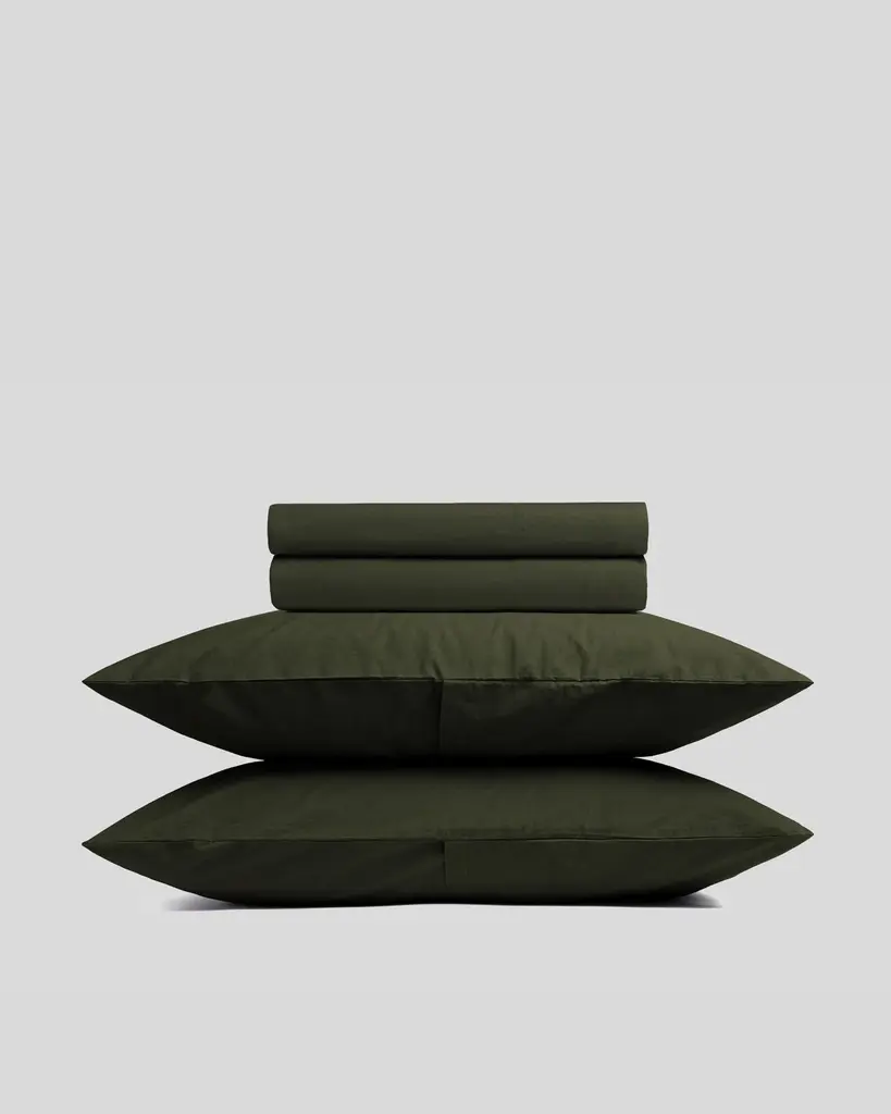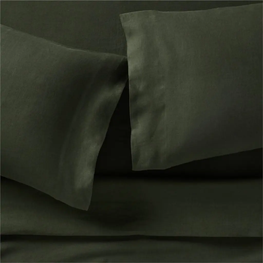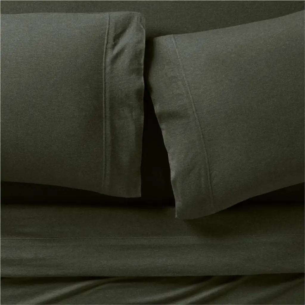 Softer than your favorite t-shirtand just as casual-classicour Cozysoft collection makes a bed you won't want to get out of. Organic cotton knits breathable jersey bedding that's supersoft and irresistibly cozy. Heathered for depth, the dark green-grey fabric serves as a sophisticated neutral. Layer the pair of pillowcases with the coordinating sheets, duvet covers and pillow shams for a modern look that's understated and inviting.Bed pillows also available.