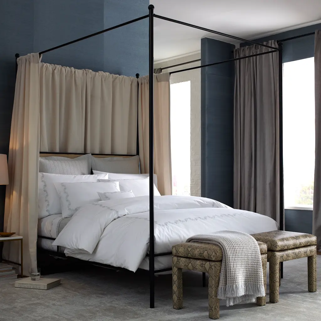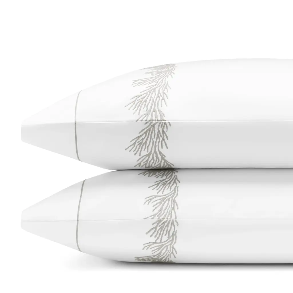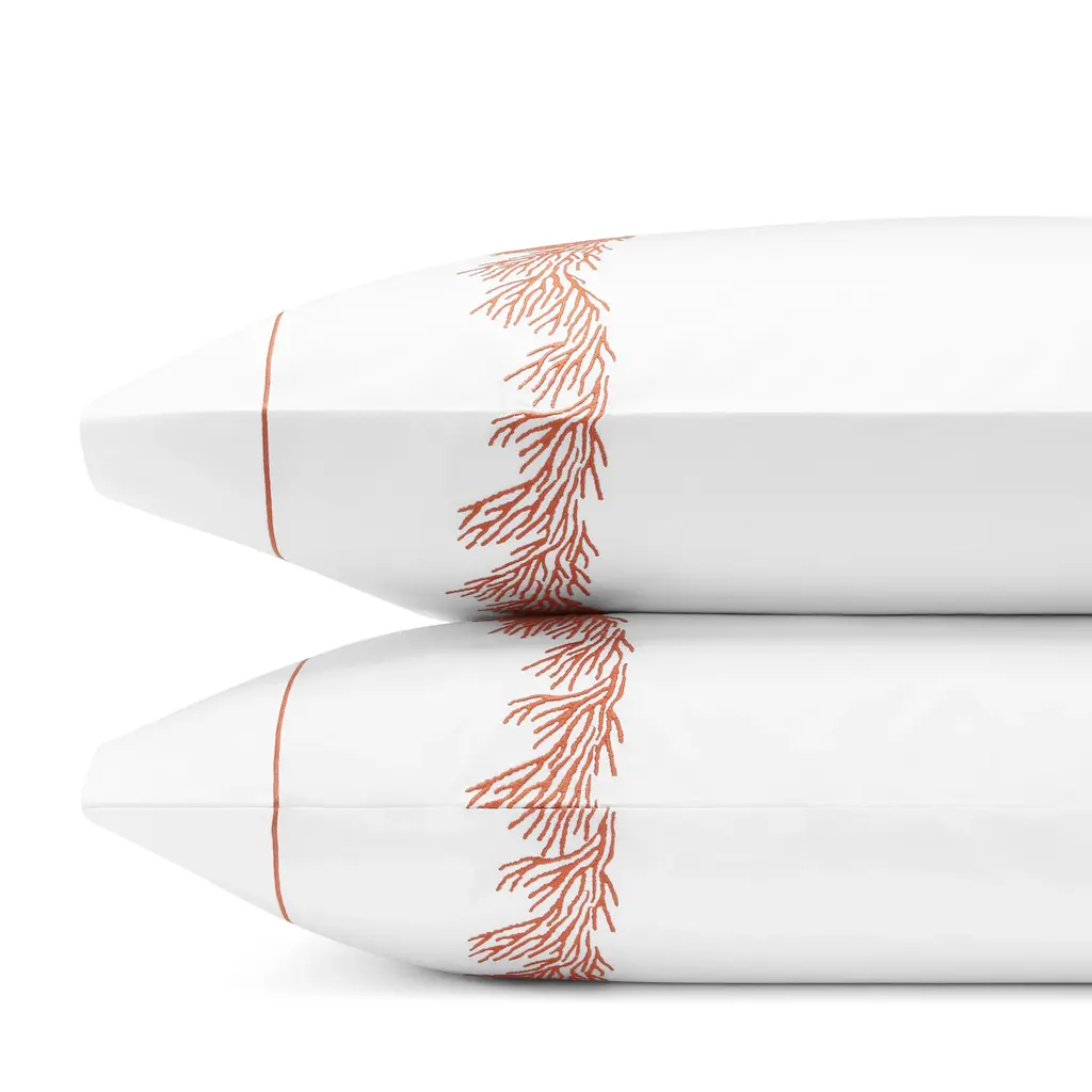 Daphne's embroidered floral vine is a beautifully crafted detail that, depending on your choice of thread color, can be quietly classic or vibrant and bold. Made on white Ceylon percale, each piece is finished with a knife edge and delicate white cording.