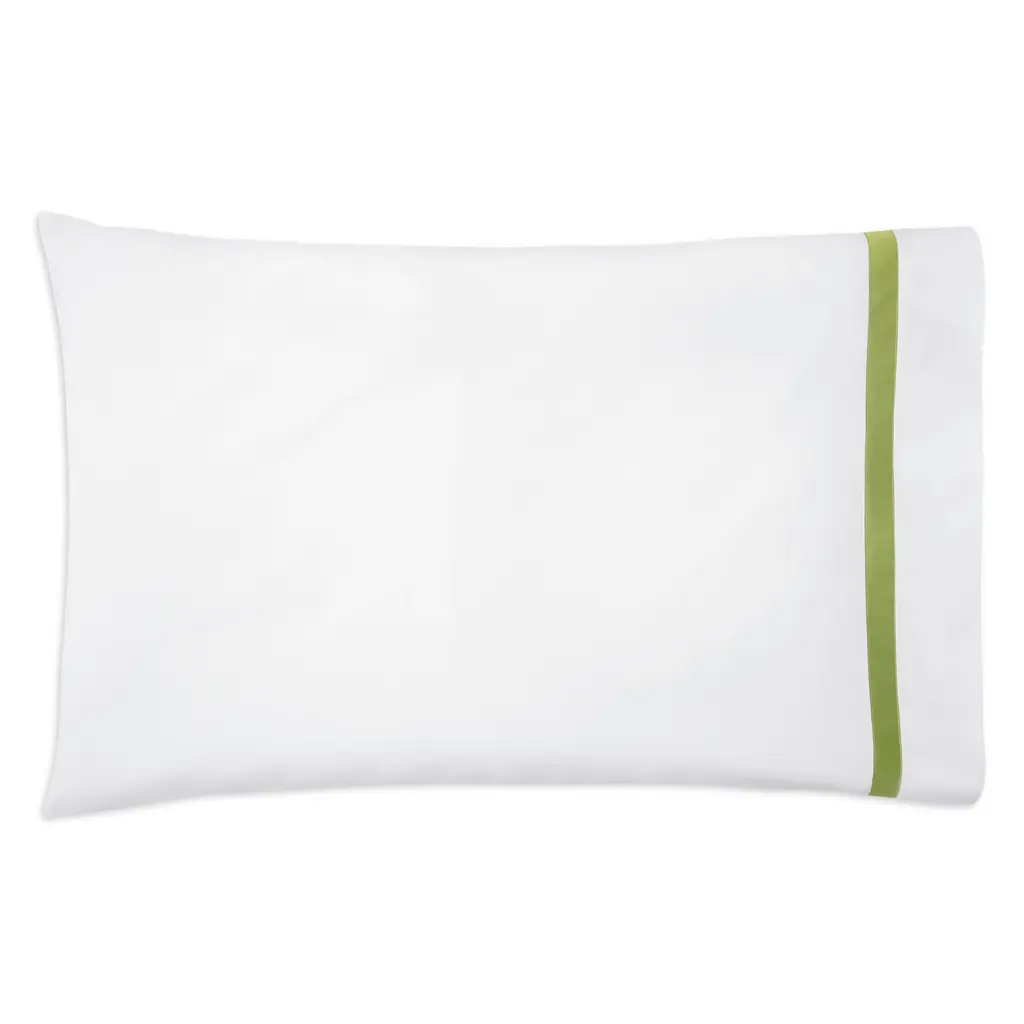 The understated sophistication of Estate's crisp white, Italian-woven long-staple cotton base is an immaculate backdrop for lustrous sateen appliqué detail, beautifully bordering these sheets to create a sense of tailored elegance.