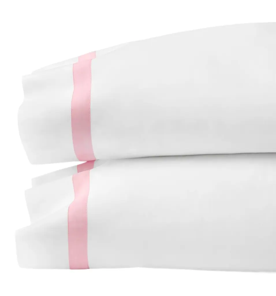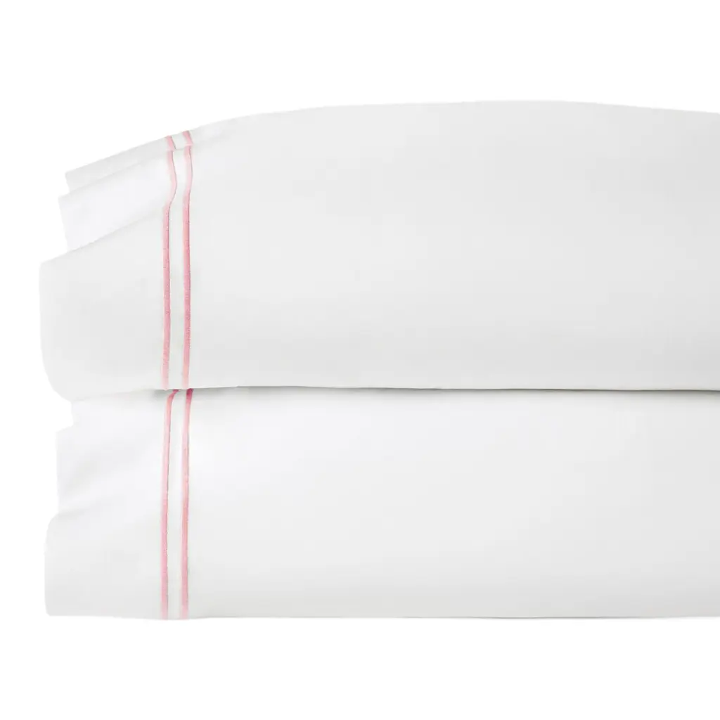 The understated sophistication of Estate's crisp white, Italian-woven long-staple cotton base is an immaculate backdrop for lustrous sateen appliqué detail, beautifully bordering these sheets to create a sense of tailored elegance.