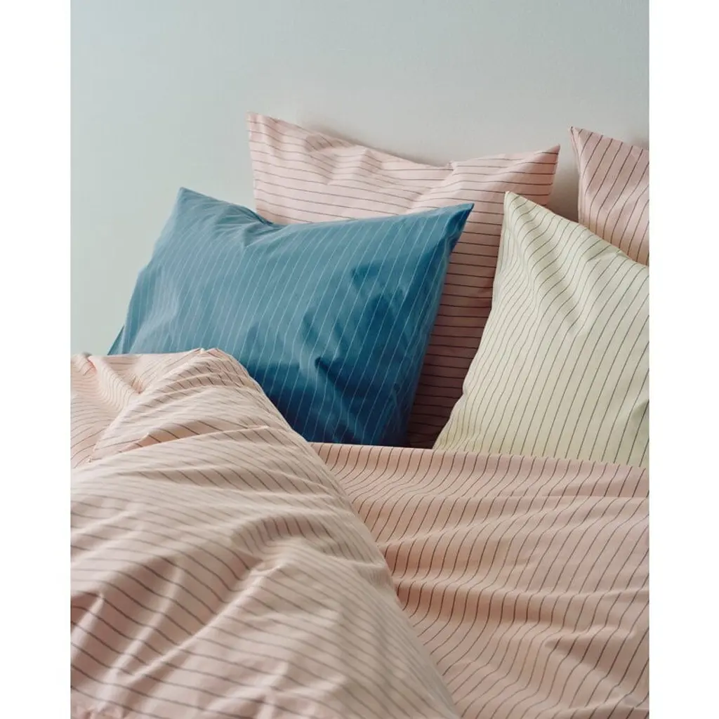 HAY’s Fineline pillowcase brings soft colors and subtle stripes into your bedroom decor. Crafted from high-quality cotton percale, the pillowcase feels pleasantly smooth and cool against the skin, and you can pair it with a matching duvet cover from the same collection. Made from organic cotton and with the Oeko-Tex certification, the Fineline pillowcase is available in different sizes. The Fineline collection takes its name from the delicate stripes that gently break up the otherwise solid-colored surface. Made from durable natural materials, these bedroom textiles are designed to stand the test of time while creating a calm setting for restful nights and slow mornings. The understated stripe pattern also pairs beautifully with more vibrant colors and bolder prints.