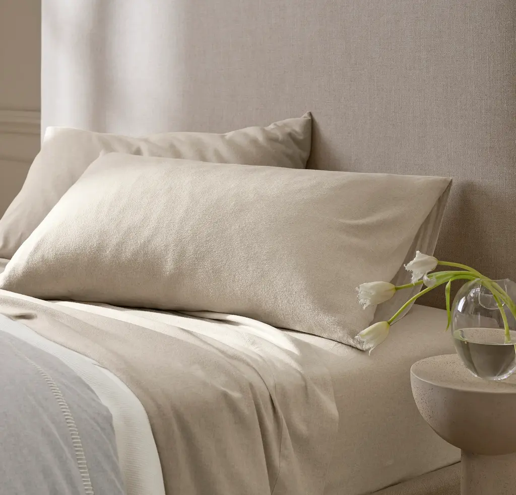 This Flannel Pillowcase Set is artisan made in Portugal to be velvety soft, and offer a rare balance of warmth and breathability. It starts with the highest quality threads sourced from the finest 100% organic cotton on earth. To create an exceptional handfeel, we add a brushing process then triple shear the fabric to naturally reduce the appearance of pills. The Feel Singularly cozy with a rare balance of warmth & breathability The Look Lavish, triple sheared to naturally reduce the appearance of pills