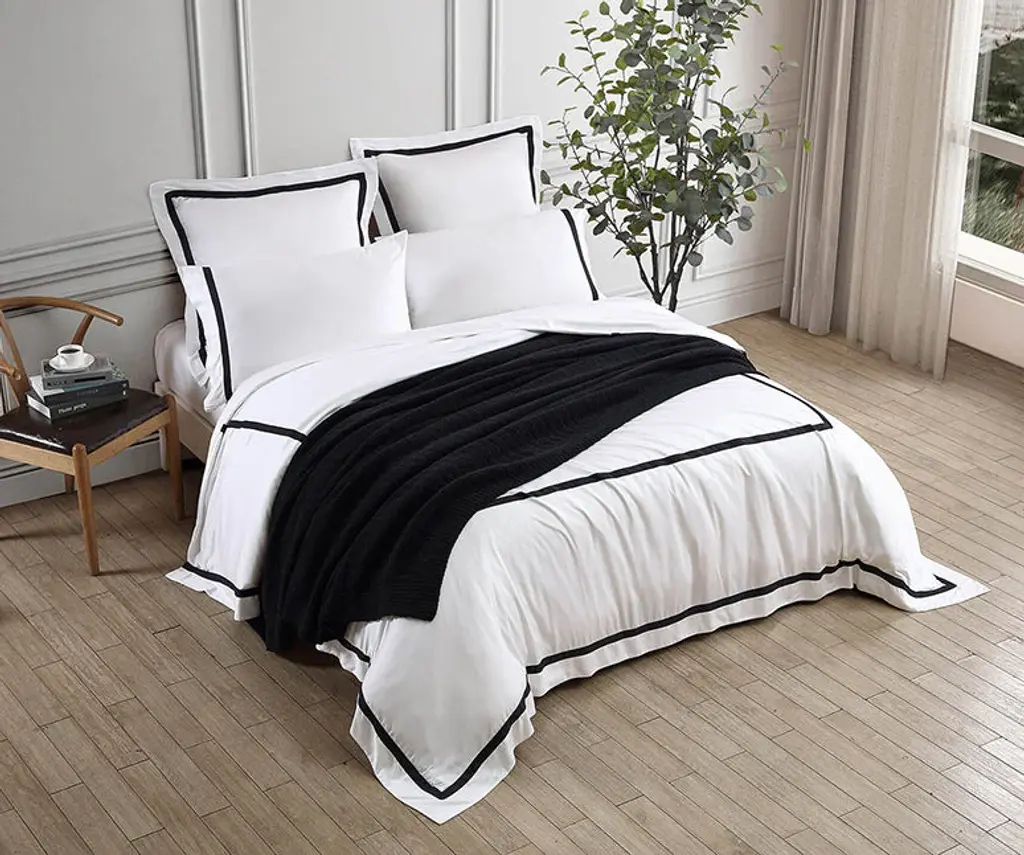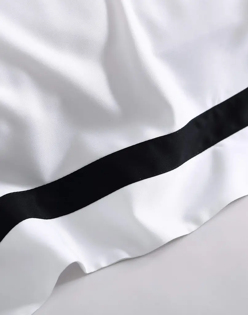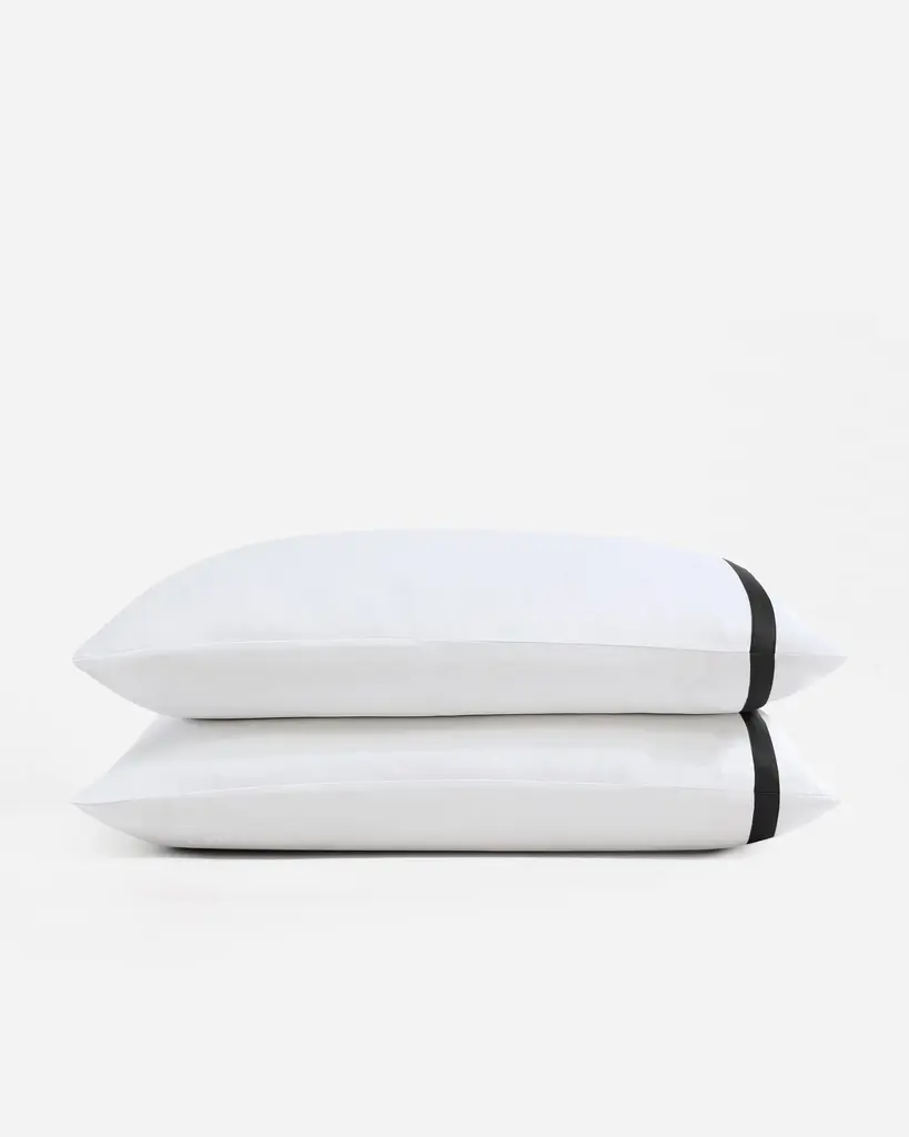 A pair of soft, bamboo viscose pillowcases to rest your weary head upon. Featuring an envelope closure and one-sided tape detailing in an array of hues, this modern-elegant set will never go out of style. Ahh, get comfy. Set includes: 2 Pillowcases Side opening Silky soft feel Hypoallergenic Natural cooling effect