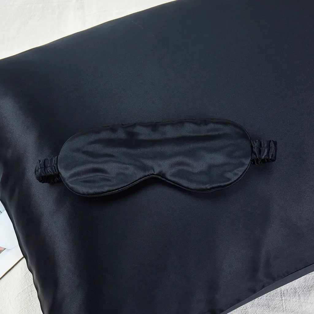 Gift Set: Black Pure Mulberry Silk Pillowcase, Eye Mask And Scrunchies | King Size