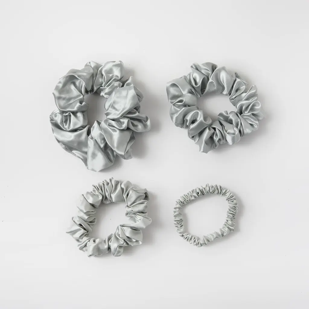 Gift Set: Silver Grey Pure Mulberry Silk Pillowcase, Eye Mask And Scrunchies | King Size