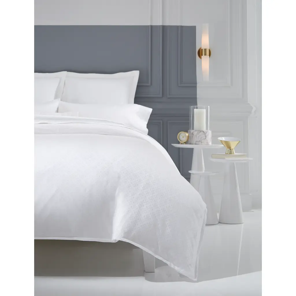 The Giza 45 Collection is SFERRA's finest bedding sheets, weaving together the rarest of Egyptian Giza 45 cottons. Known as "The Queen of the Nile", highly coveted Giza 45 is the longest-staple cotton fiber that's carefully hand-harvested to ensure that only the most mature cotton bolls are cultivated. Indulge in the soft, silken-smooth finish of this lightweight yet resilient fabric featuring a brilliant quatrefoil motif on classic sateen sheeting.