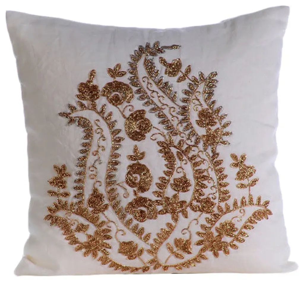 Gold Magical Garden is an exclusive 100% handmade decorative pillow cover designed and created with intrinsic detailing. A perfect item to decorate your living room, bedroom, office, couch, chair, sofa or bed. The real color may not be the exactly same as showing in the pictures due to the color difference of monitors. This listing is for Single Pillow Cover only and does not include Pillow or Inserts.Decorative Pillow Cover Details:Condition: 100% Brand NewDimension: 14 x 14 inch / 35 x 35 cmFabric: Cotton LinenColor: WhiteColor Map: WhiteStyle: ContemporaryPattern: Nature & FloralBack of the Cover: Plain fabric with hidden flap covered zipper for easy insertion and removal of inserts.The HomeCentric is the place where luxury is coated in comfort. Coveted by many, we offer a wide range of decorative pillow covers, euro shams, bed runners, table runners and even fabrics for your curtains and other home decor products. These pieces are created by professionals from its design to finishing. Our services reach out from customization to endless effort from your first click to the day we deliver and even after that. Feel The HomeCentric as your home for decor.