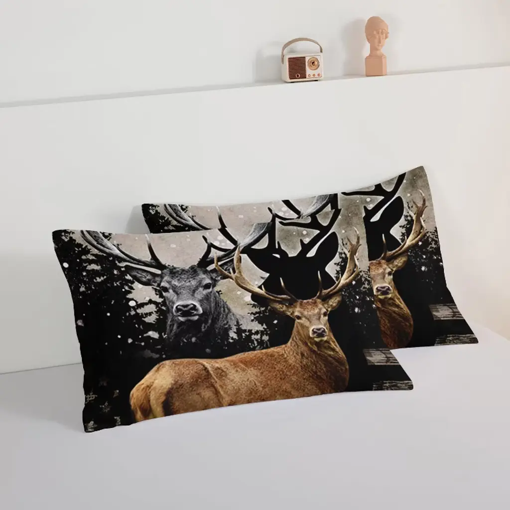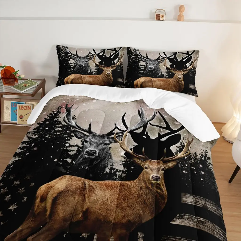 Hachikiko Snowy Forest Deer Comforter Set - 3Pcs (1 Comforter + 2 Pillowcases),ultra-soft Microfiber,twin Size