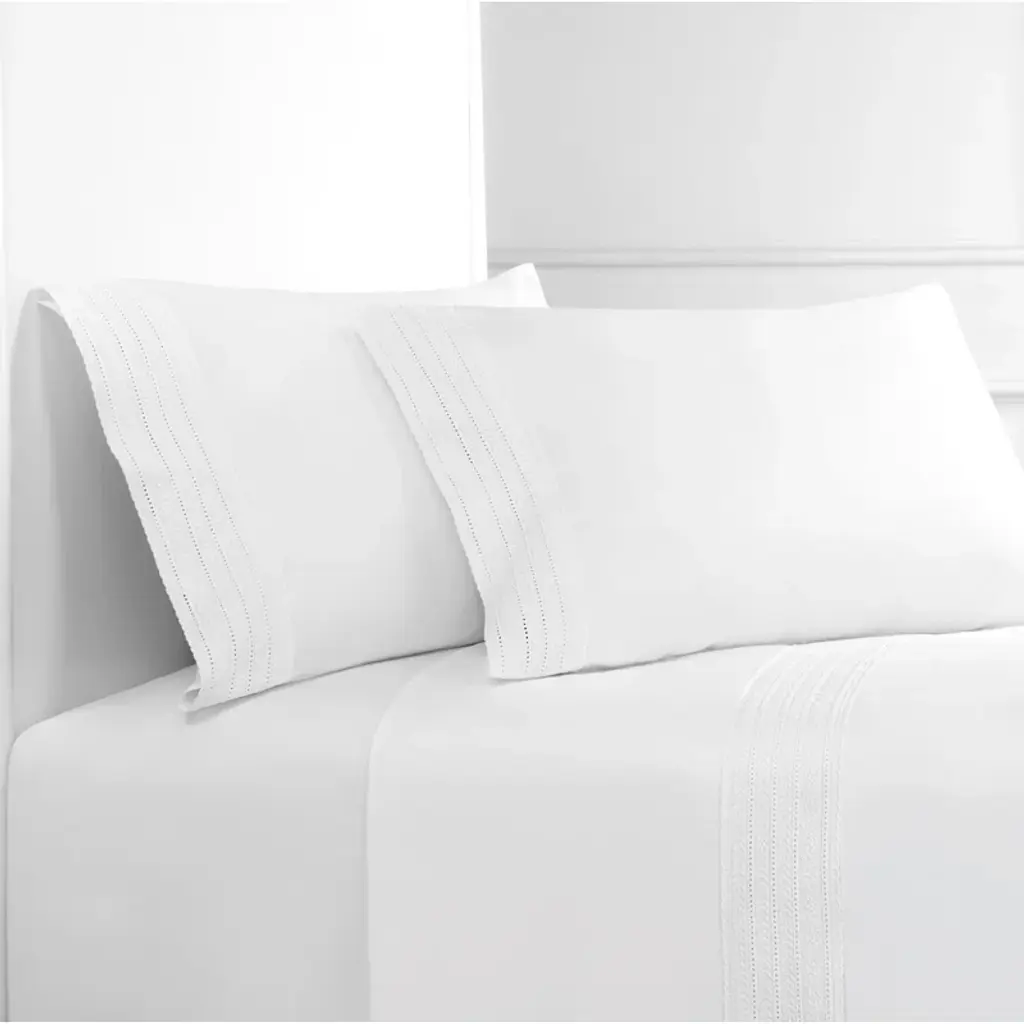 Woven in Italy of fine Egyptian cotton sateen, this silky-soft pillowcase is finished with a decorative lace border with hemstitching.