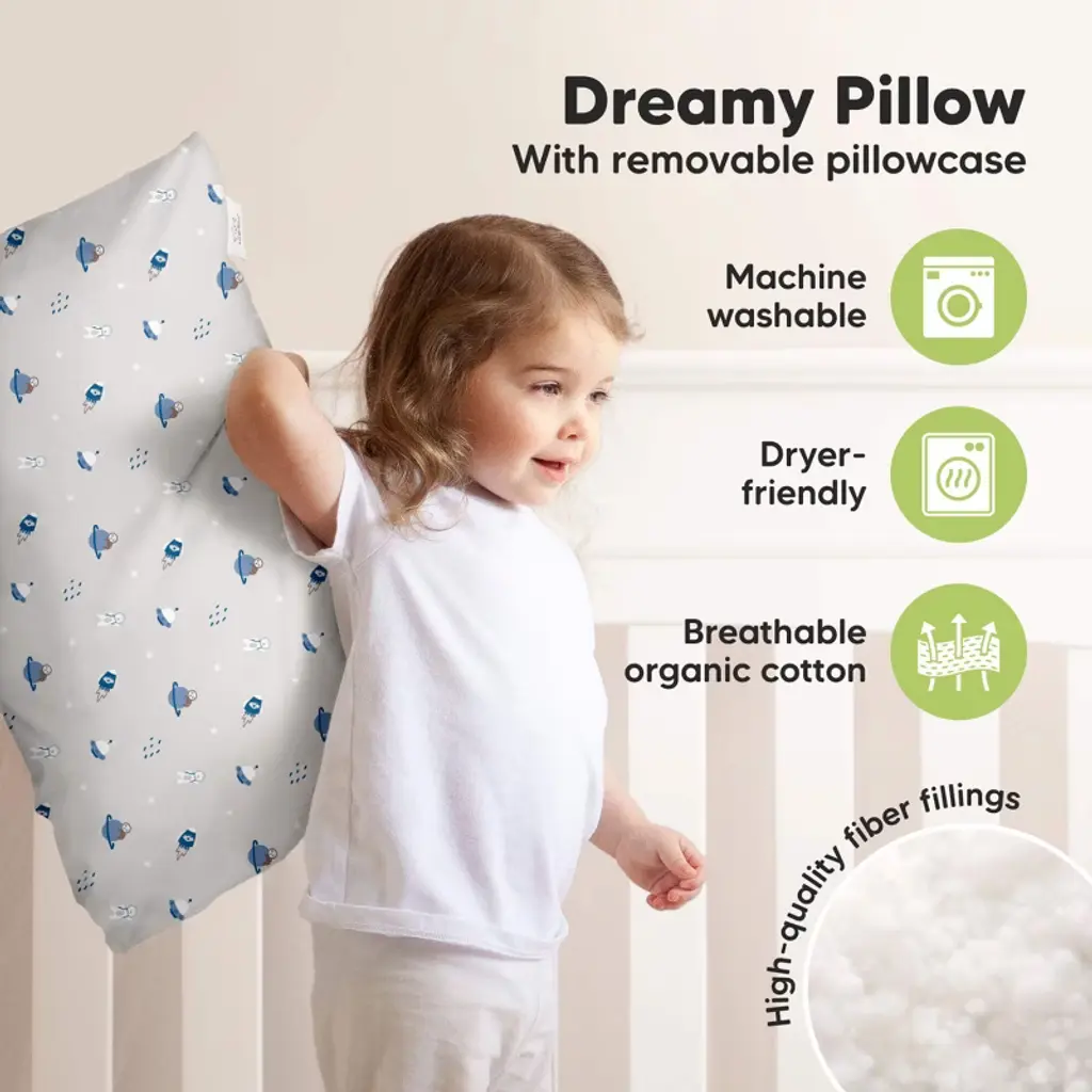 Keababies Jumbo Toddler Pillow With Pillowcase, 14x20 Soft Organic Toddler Pillows For Sleeping, Kids Travel Pillow (Cosmo)