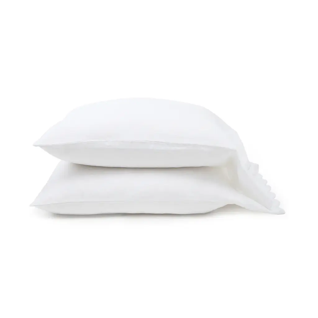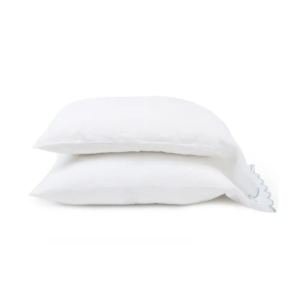Indulge in the romantic simplicity of the Kelly Pillowcase (Set of 2) from Pom Pom At Home. Crafted from extra-soft linen sheeting, each edge is delicately embroidered with scalloping in soft hues, adding dimension and elegance. Complete your bedding ensemble with this set that includes 2 pillowcases for an impeccable drape on your bed. Highlights