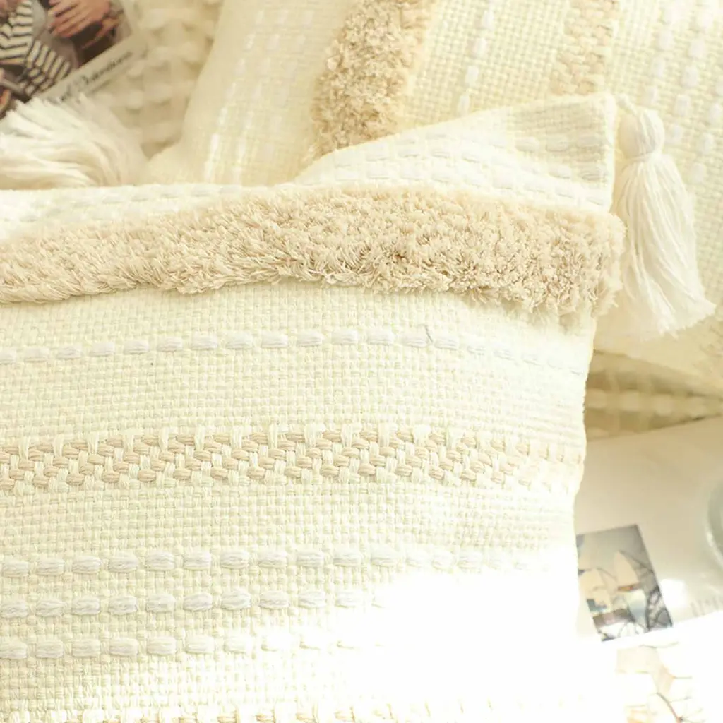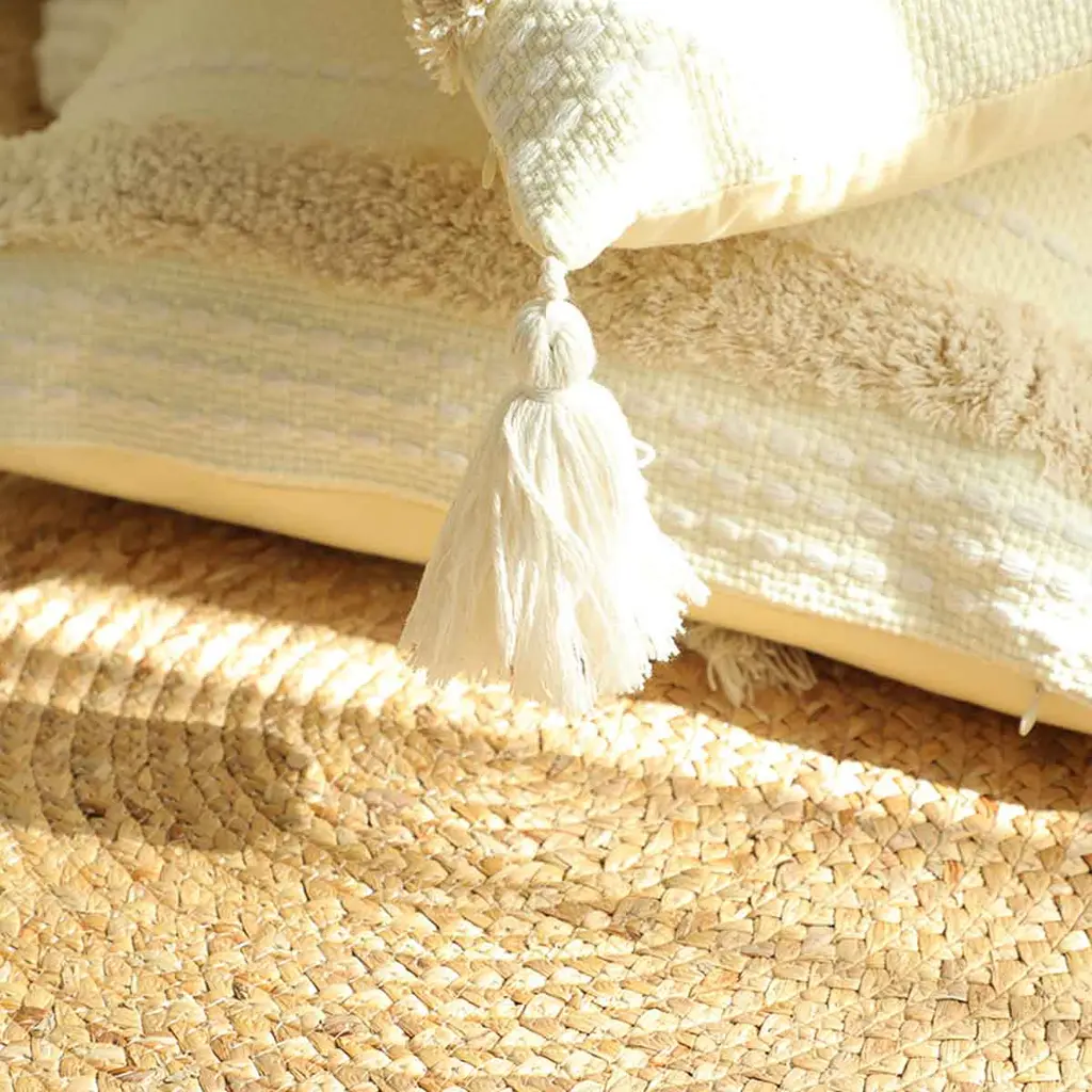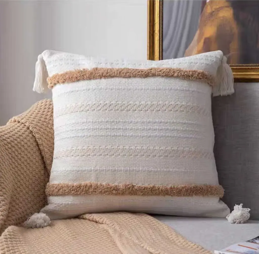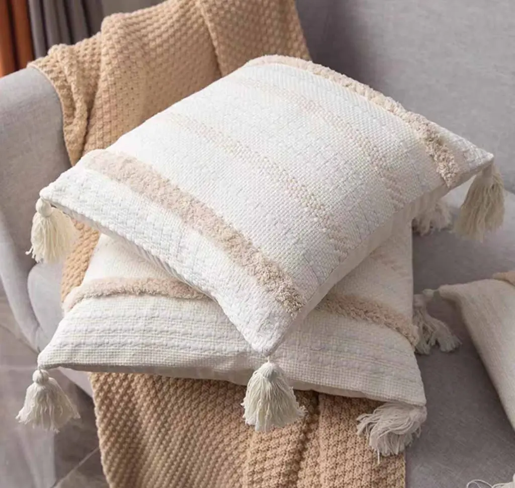 * Neutral beige color and tasseled corners that can easily match with any style.