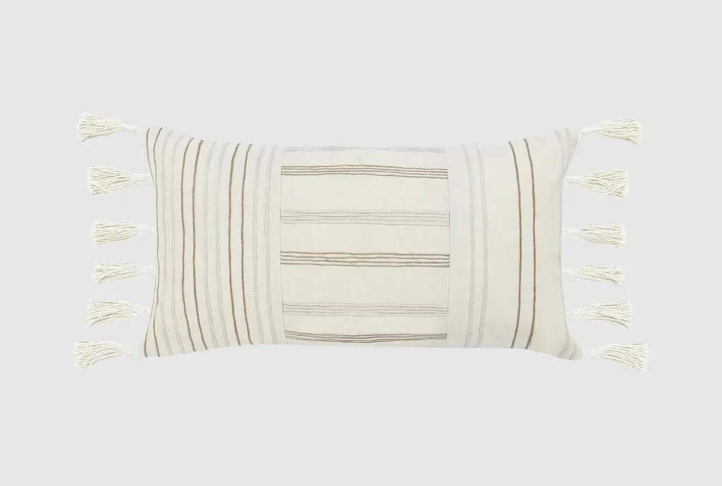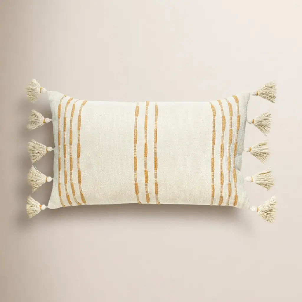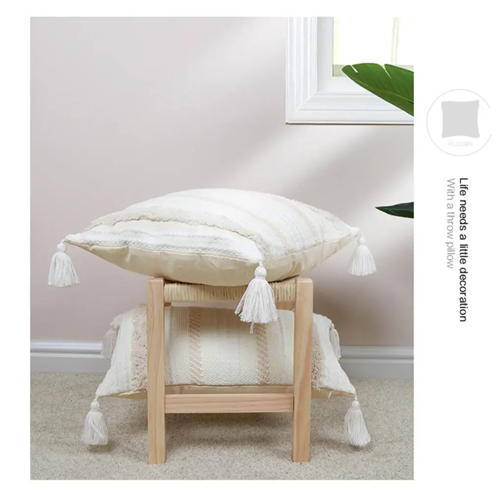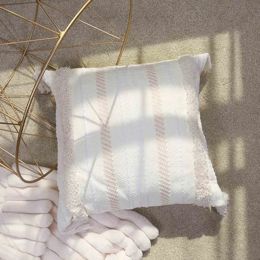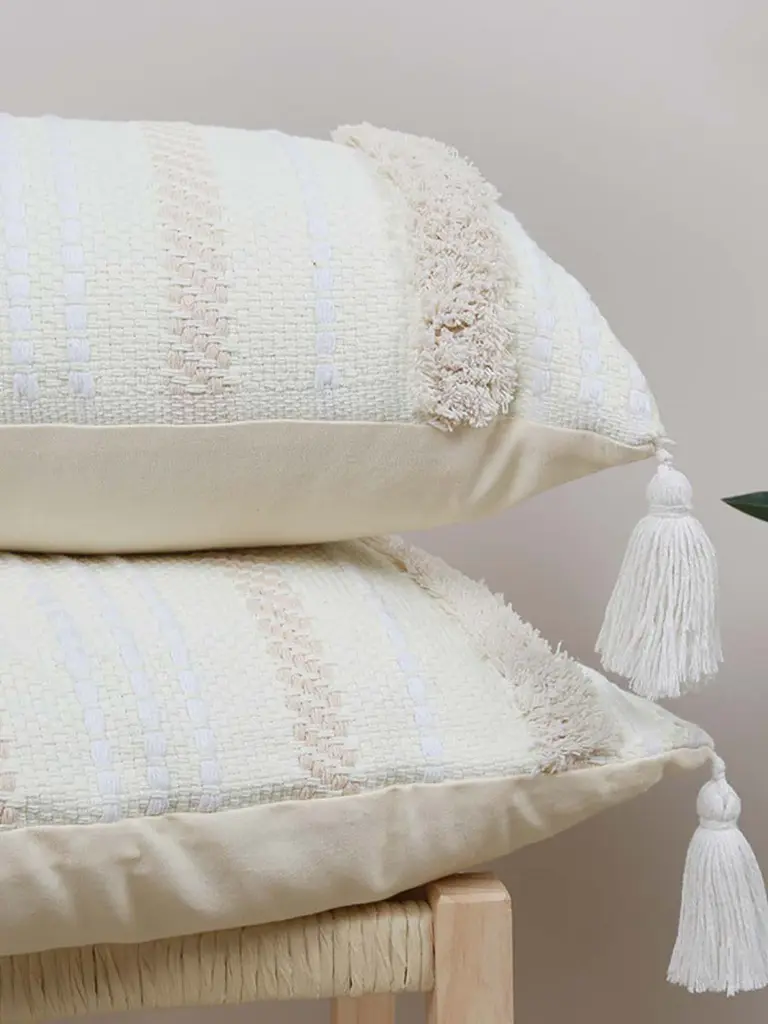 * Neutral beige color and tasseled corners that can easily match with any style.