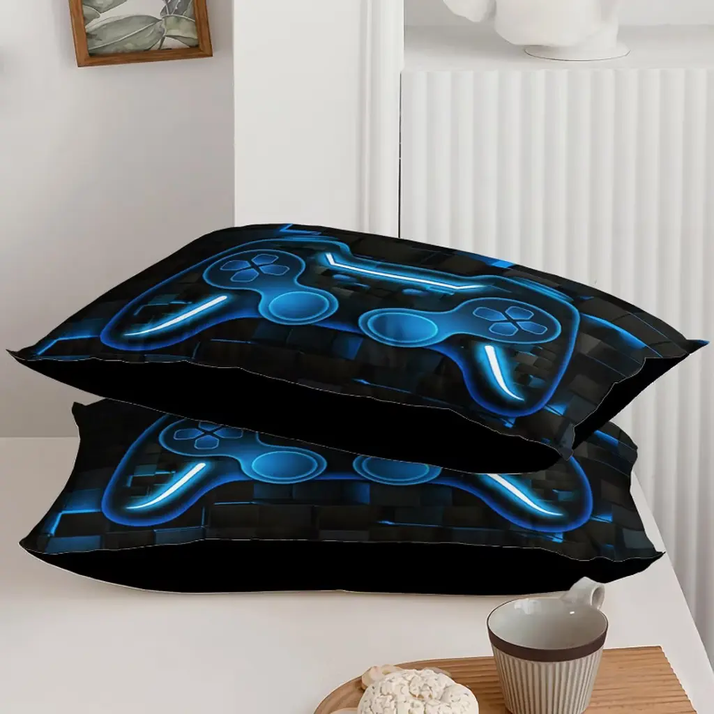 Luupatchy Game Console Comforter Set With 1 Quilt 2 Pillowcases, For Teens Men Adults,blue,twin