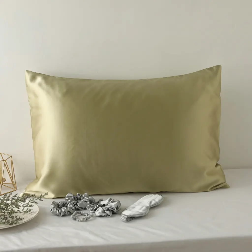 Luxury Pure Mulberry Silk Pillowcase | Drape Collection Greens In Wasabi Green