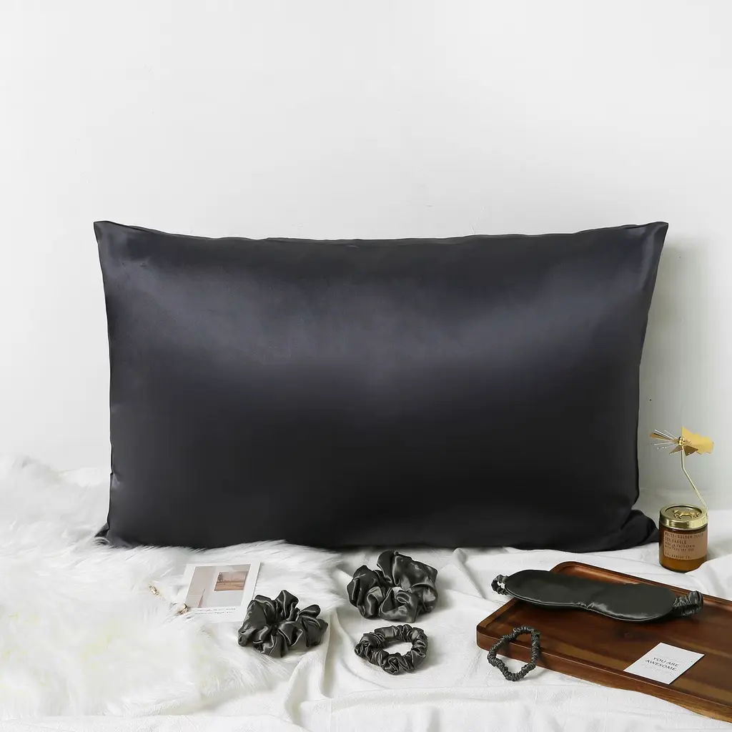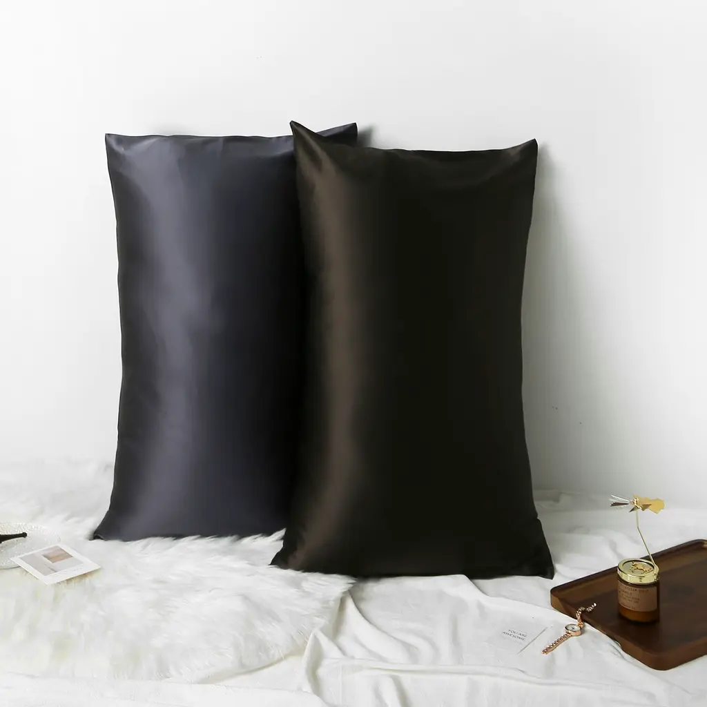 Luxury Pure Mulberry Silk Pillowcase | Queen Size | Drape Collection Neutrals In Black Caviar