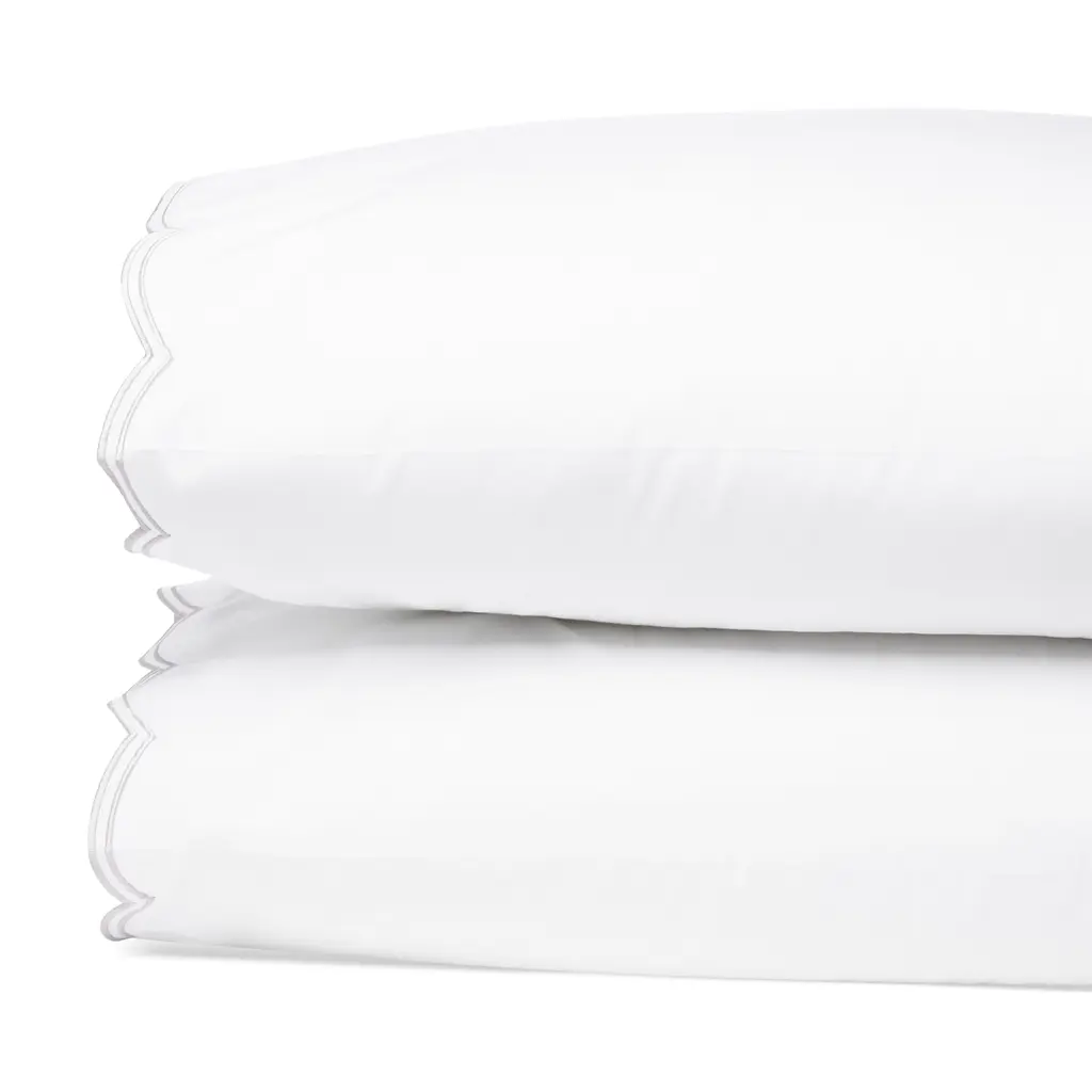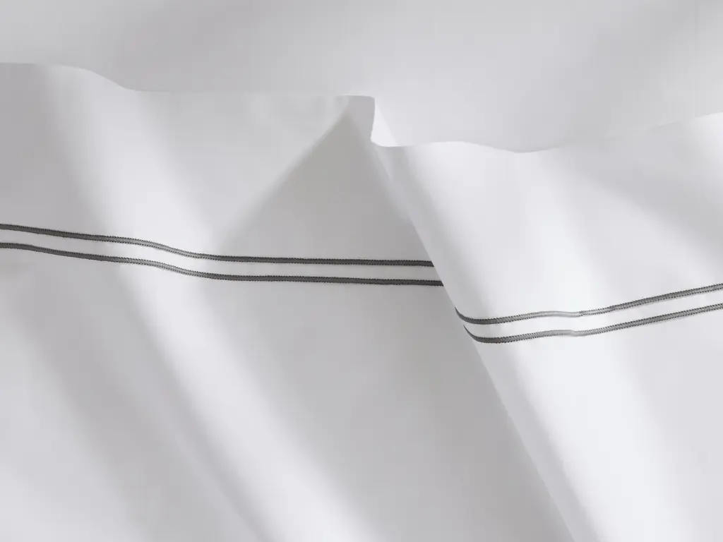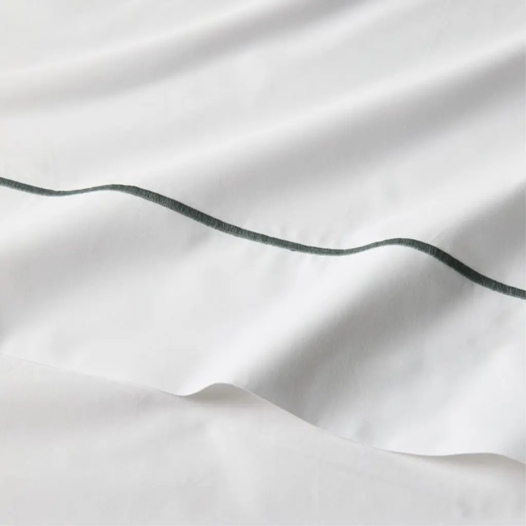 Woven from 100% certified organic cotton percale, white pillowcases pair the soft, supple hand of cotton with classic hotel-style details. Tailored faded teal stitching lends an understated elegance. CB2 exclusive.