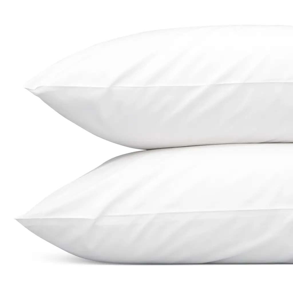 A contrasting double ribbon appliqué border trims this Matouk pillowcase crafted in crisp white, luxurious Egyptian cotton percale, inspired by the unique arch trim of shop awnings on Worth Avenue in Palm Beach.