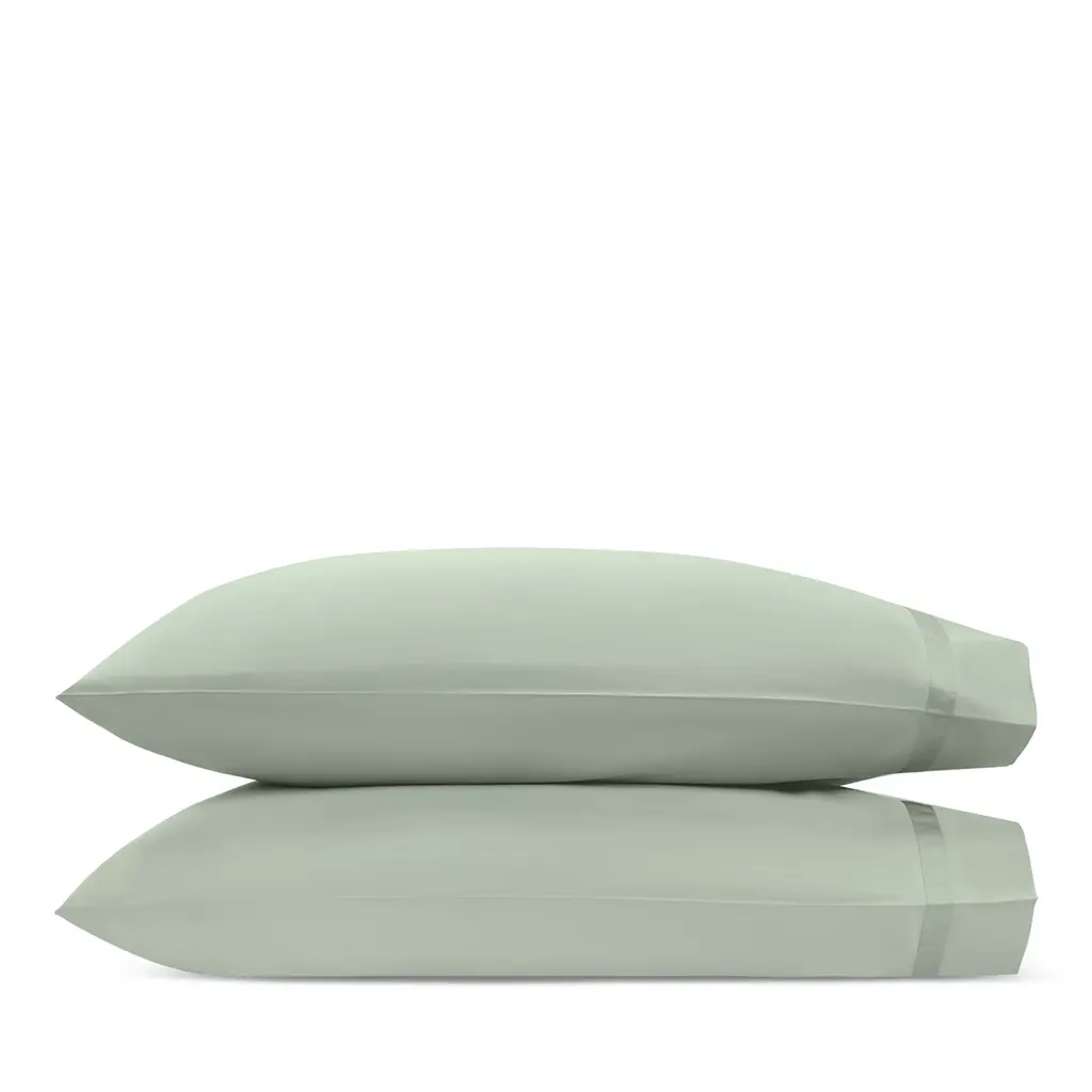 Crafted from fine Egyptian cotton, Matouk's Nocturne sheets complete an opulent or traditional space, with its classic colors and luminous sheen, accented with a tonal ribbon border.