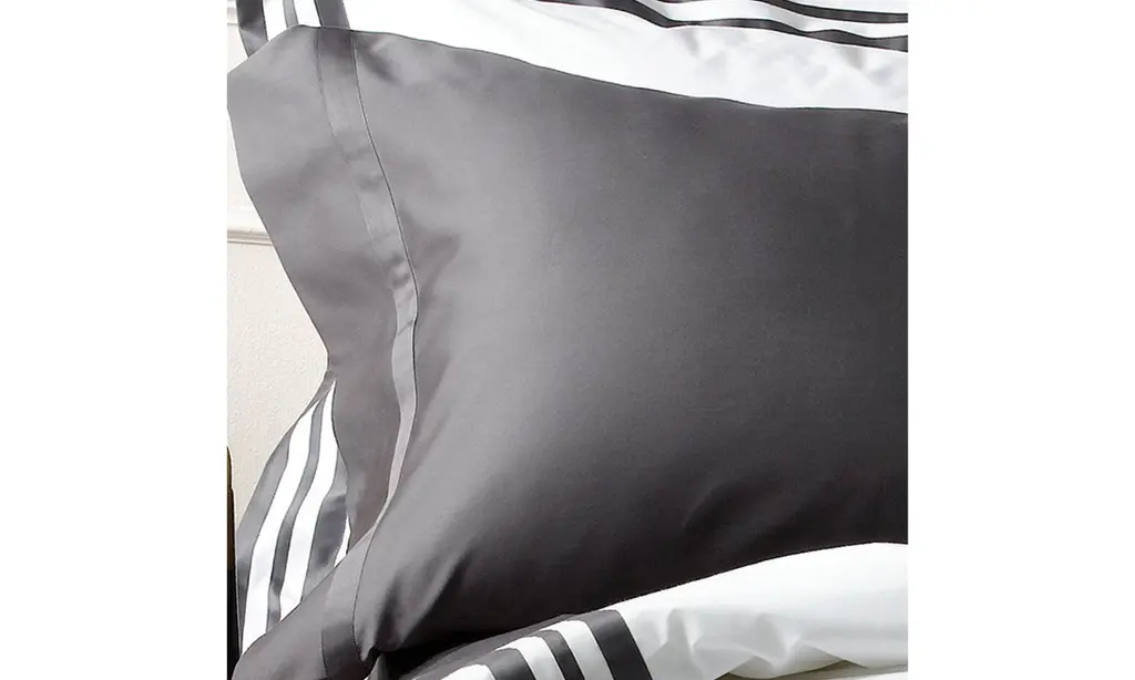 Crafted from fine Egyptian cotton, Matouk's Nocturne sheets complete an opulent or traditional space, with its classic colors and luminous sheen, accented with a tonal ribbon border.