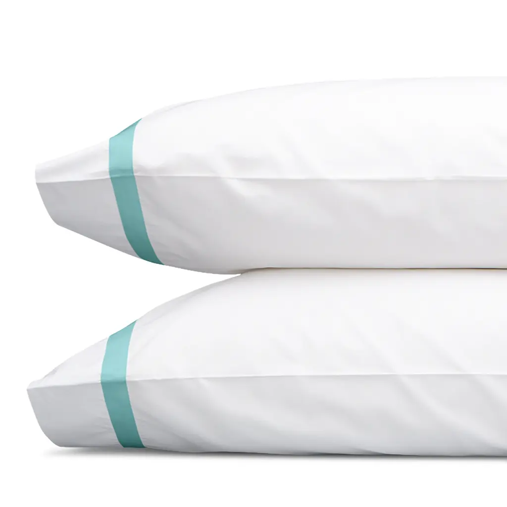Crafted from fine Egyptian cotton, Matouk's Nocturne sheets complete an opulent or traditional space, with its classic colors and luminous sheen, accented with a tonal ribbon border.