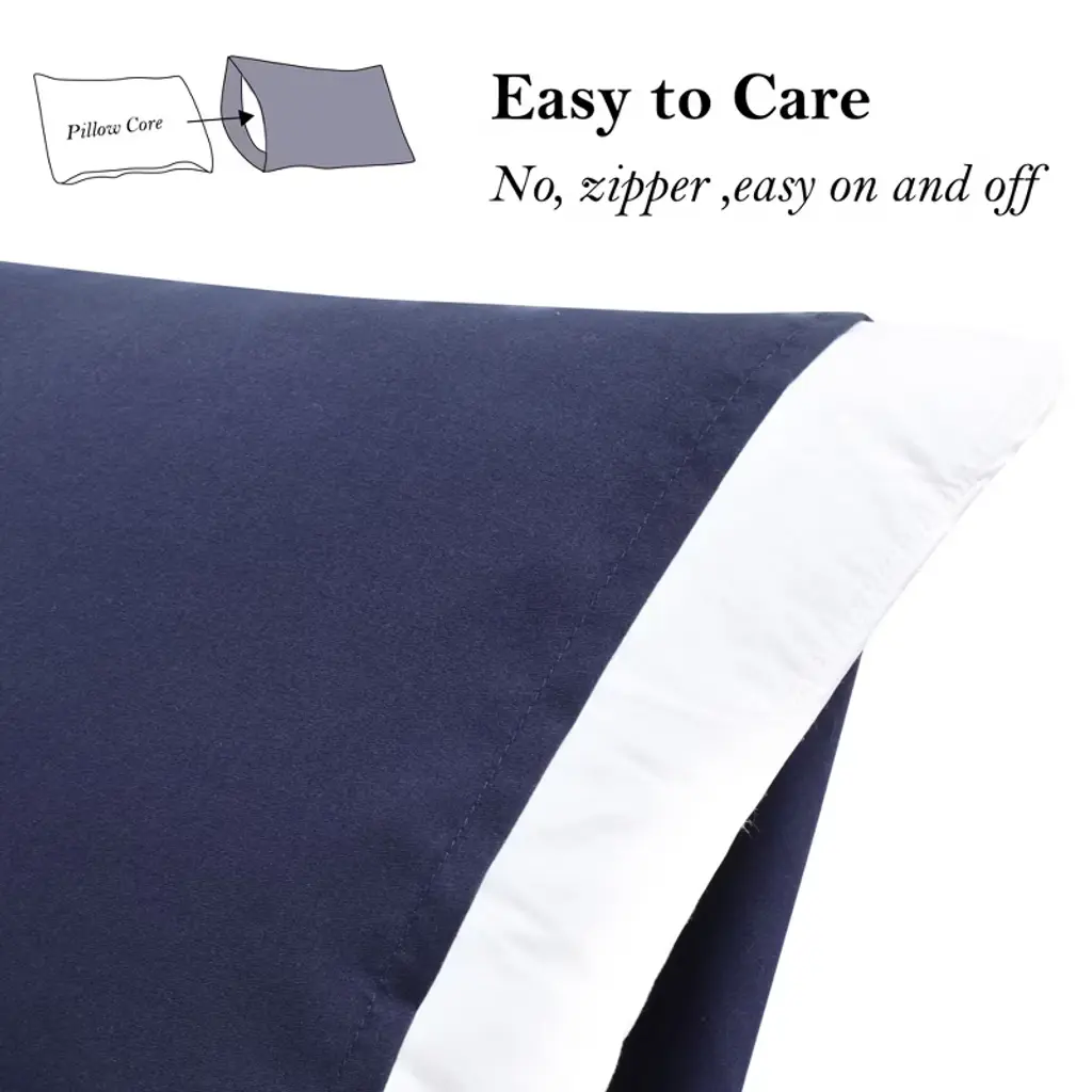 Piccocasa Envelope Closure 110gsm Microfiber Brushed Pillowcases 17"x25" 2 Pcs Navy
