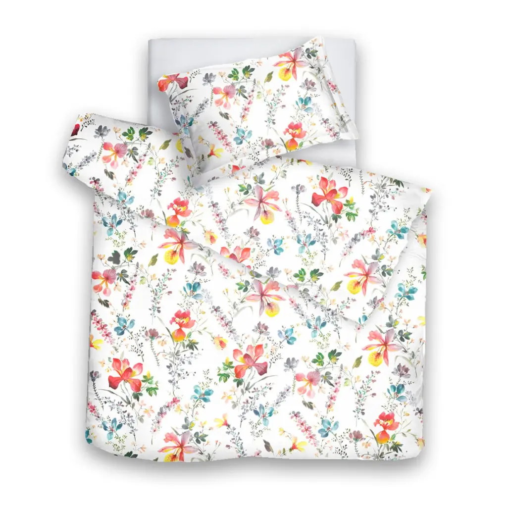 Alive with vivid florals and lush foliage, the Schumacher Pomegranate design that appears on one of Matouk's most popular percale styles is now reimagined for the signature Roman linen line.