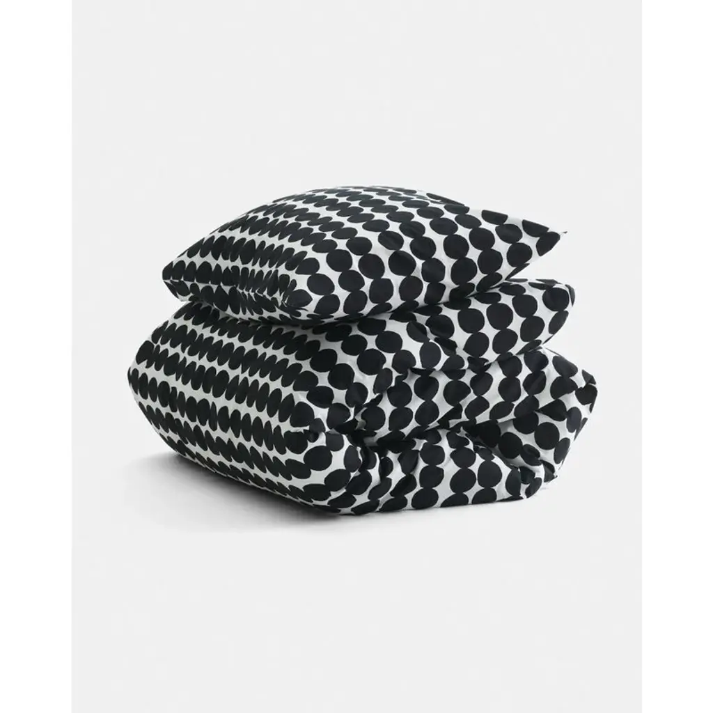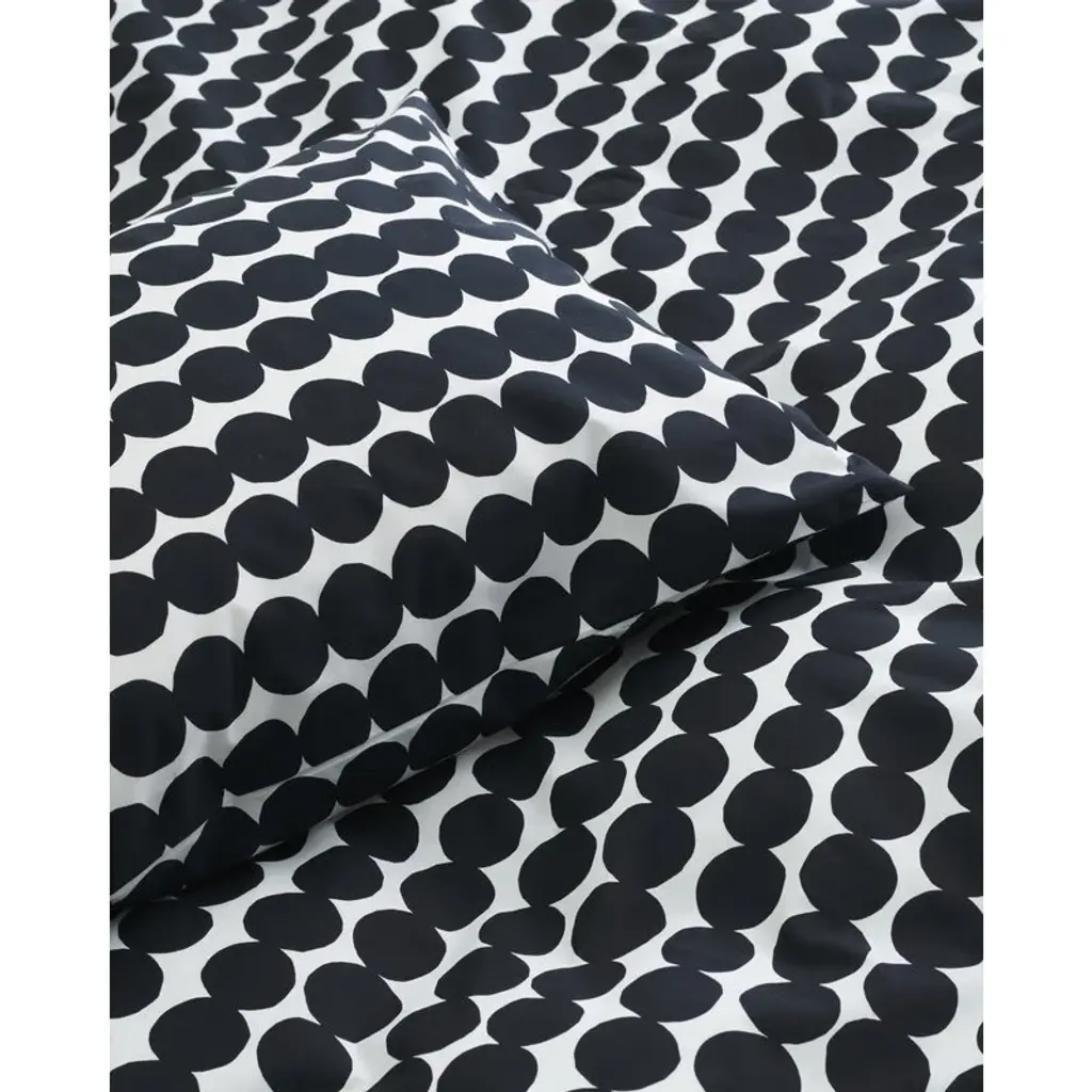 Marimekko’s Räsymatto pillowcase features Maija Louekari’s lovely pattern in black and white. Räsymatto, Finnish for rag rug, depicts the texture of traditional rag rugs with a pleasant feel of nostalgia. The pillowcase is made of 100% cotton and measures 19.69 x 23.62 x 0 in (50 x 60 x cm. cm). Finish the setting with Marimekko's Räsymatto duvet cover.