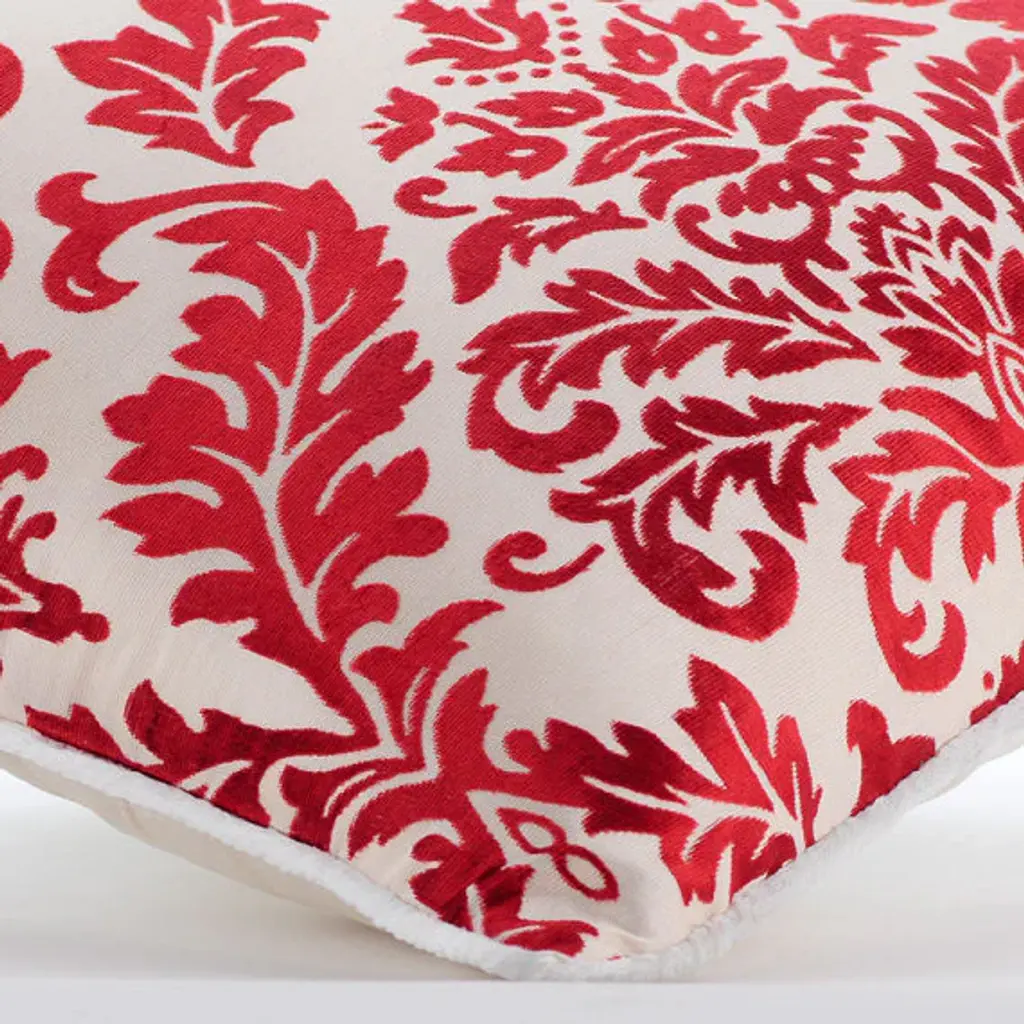 Red Red Damask Pattern 22"x22" Burnout Velvet Pillowcase, Cayenne Red Damask