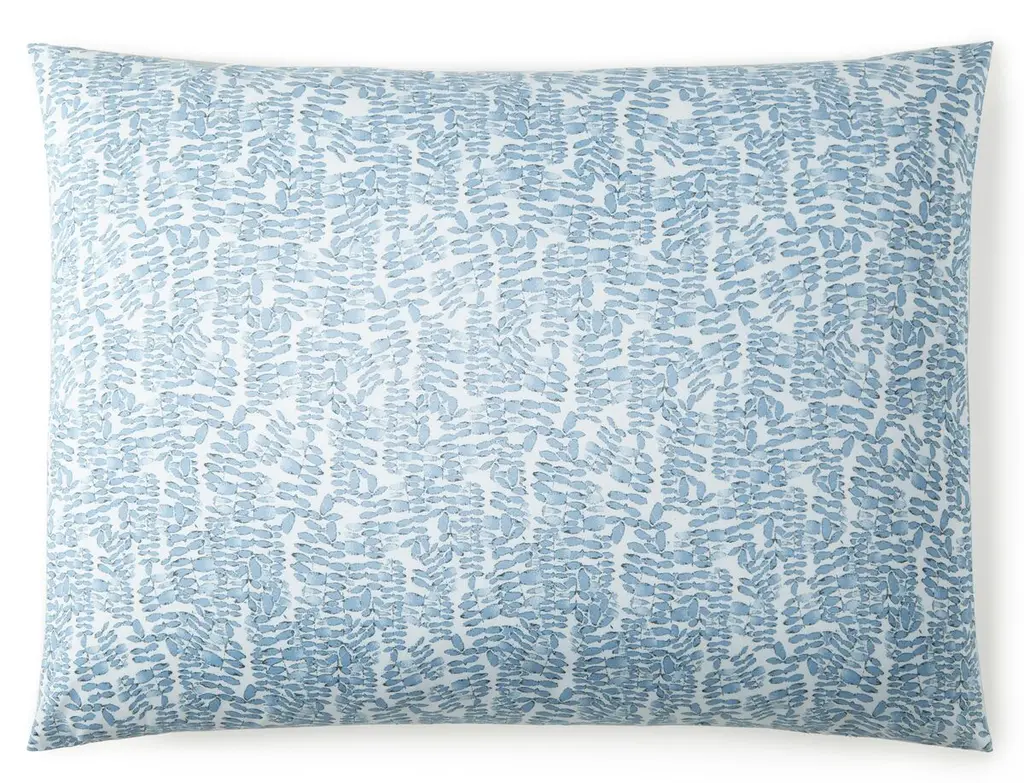 Anne de Solene's Ruban Sheets feature a very beautiful, modern geometric design of hydrangea flower petals that look hand painted and are done in a chic blue on a white ground. Contemporary geometric style in a modern updated color palette. Ruban coordinates beautifully with many of the Anne de Solene solid percale colors.