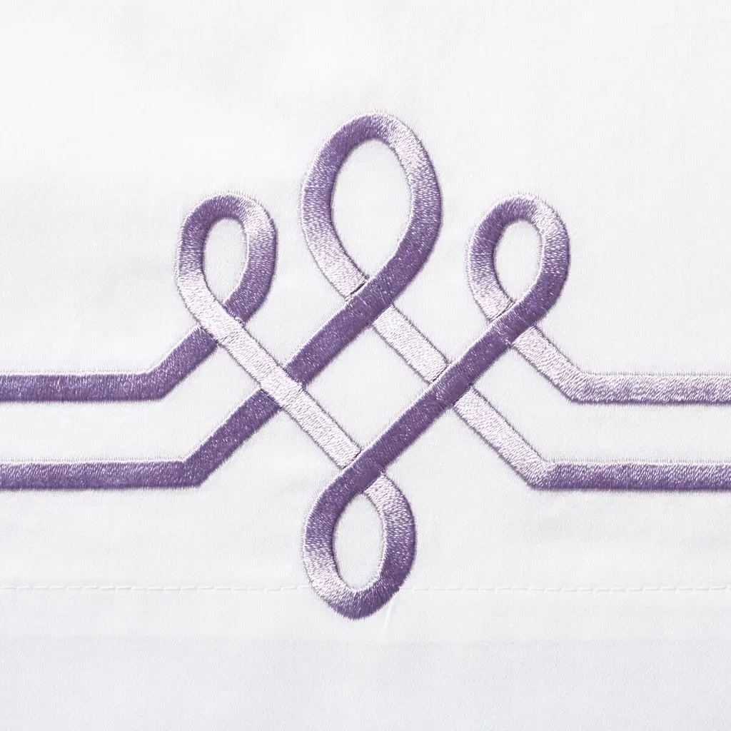 Exquisitely embroidered with an elegant loop design at the hem, this luxurious pillowcase pair is made from the finest Egyptian cotton sateen, woven in Italy and artfully embroidered in the USA.