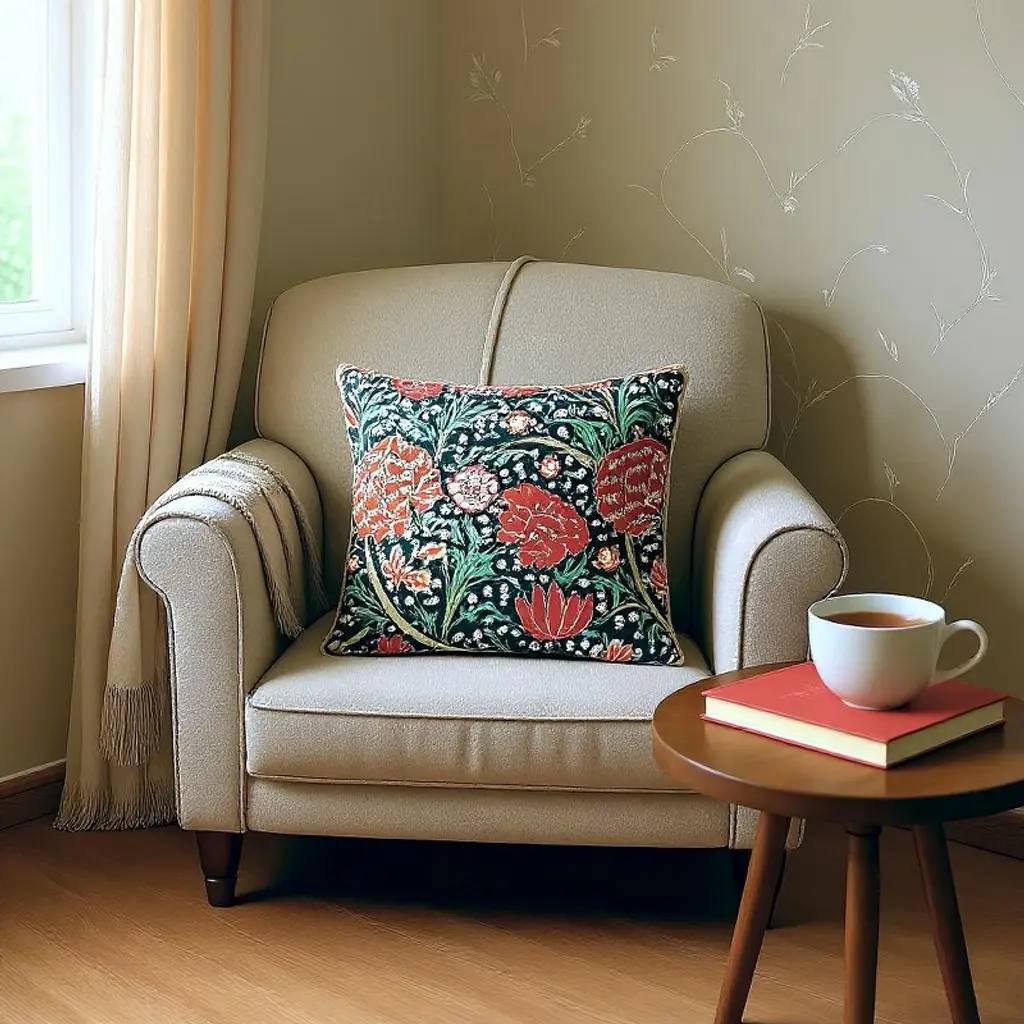The flourishing flowers of William Morris’ The Cray create a swirling pattern and bursts of colour throughout this delicately woven tapestry pattern. For lovers of William Morris designs, It pairs perfectly with our Strawberry Thief range, which is another example of the British Arts and Crafts style Morris was responsible for creating in the mid-19th century.PRODUCT DESCRIPTION: A decorative pillowcase that is sure to liven up any room in the house This modern, tapestry cushion design makes the perfect scatter cushion for a modern finish and is a welcome addition in any homePillow covers 18x18 inchesThe unique cushion covers have a double-sided tapestry cushion with a piped edgeConcealed zip on one end to allow pad to be removed for washing or replacementThe drawing is represented on both sidesSize: 17.7 x 17.7 x 0.4 inches - Weight: 0.4 lb