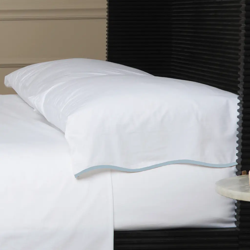 Indulge in a luxurious night's sleep with the Skylar Cotton Percale Pillowcase Set from Pom Pom At Home. Made from the finest long-staple cotton, this percale weave provides a cool, breathable texture- perfect for hot sleepers. The delicate wave detail adds a sophisticated touch, while the durable and timeless qualities make it a worthwhile investment. Choose from White, Flax, French Blue or Navy for a perfect match to your bedroom. Highlights