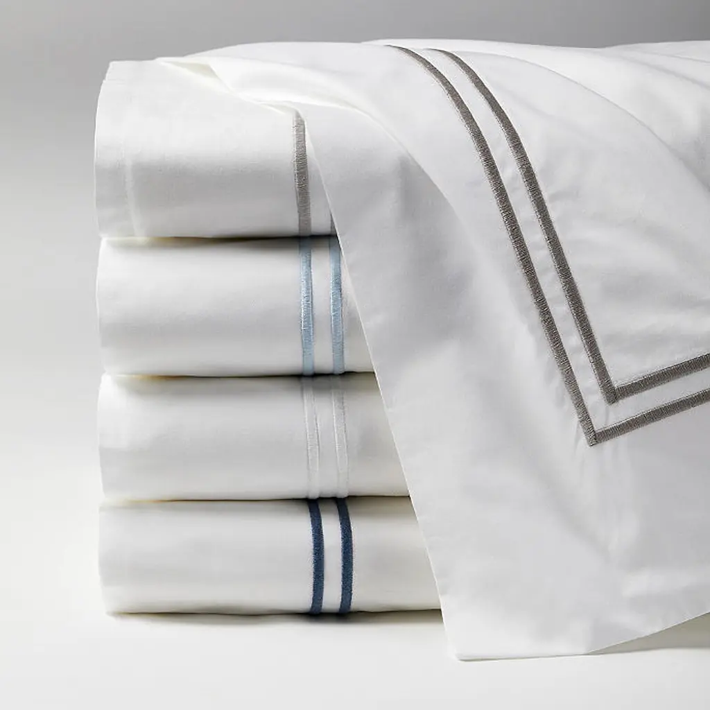 Inspired by the twinkling stars of the midnight sky, the five lines of Stella embroidery in alternating classic colors grace Home Treasures' 600-thread count, Egyptian cotton in an Italian sateen weave creating sheets with a contemporary, fresh look.