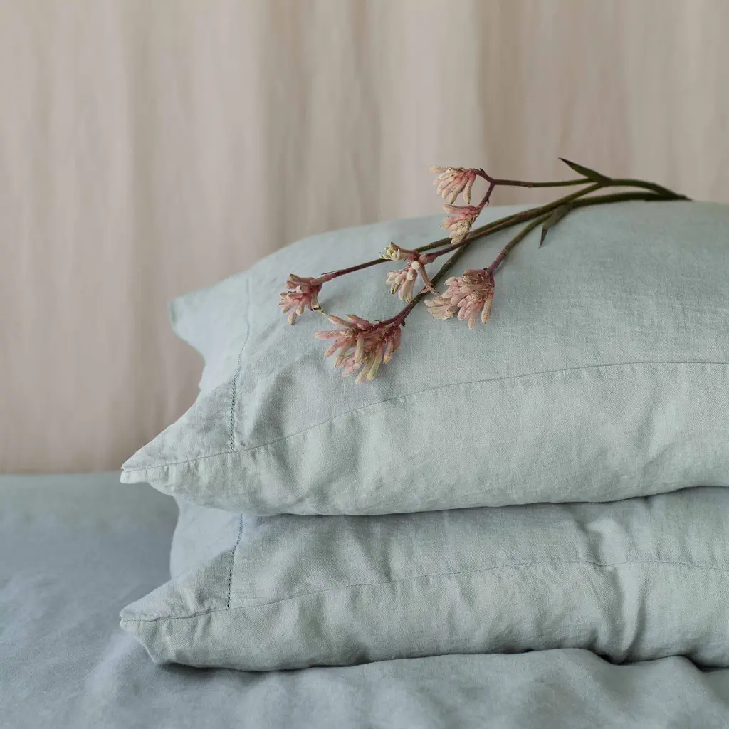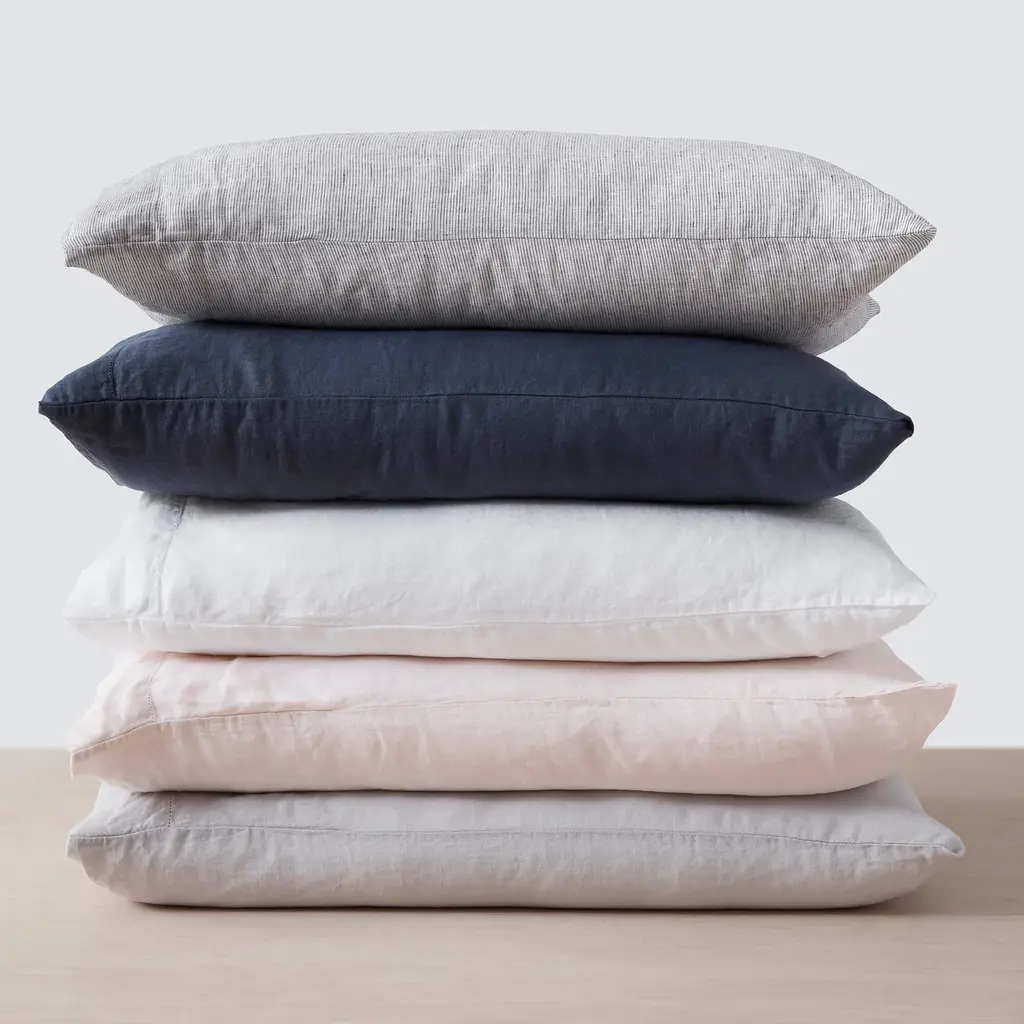 Sustainably made from the finest French flax, rest easy with these luxuriously soft linen pillowcases. Organic texture. Laid-back vibes. Oh-so-soft. Sweet dreams begin with our linen pillowcases. Loomed to give you a relaxed look, these pillowcases are designed to get better (i.e. softer) with time. Made using only the finest French flax and woven in the oldest, family-run linen mill in Portugal, each piece is Oeko-Tex® certified and made sustainably in a fair trade working environment. Note: Set includes two pillowcases. Available in two sizes: standard or king. We recommend styling the standard set on a full- or queen-size bed. The king set works perfectly on a king- or california-king size bed. Want to see our bedding for yourself? Go on and test out our linen fabric swatches.