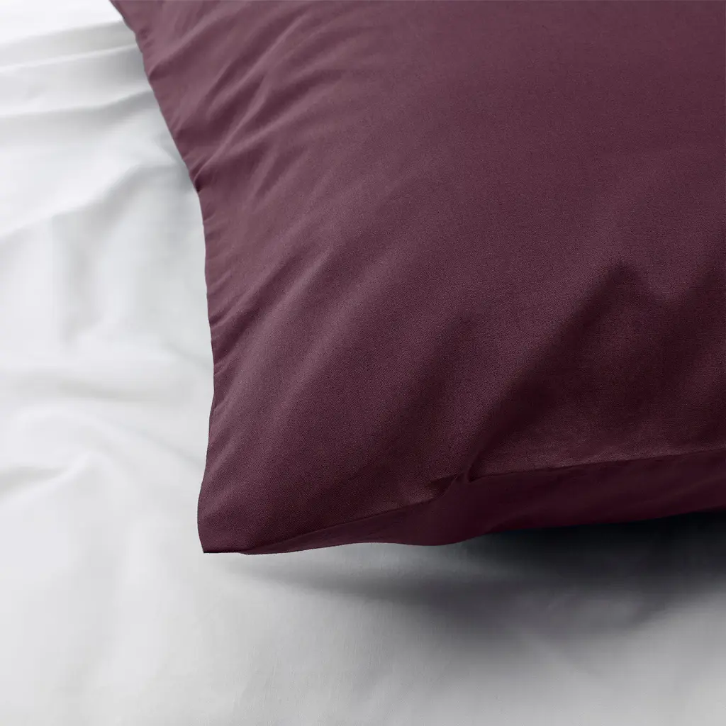 ULLVIDE Pillowcase - deep red Queen. The tight percale weave makes the fabric very durable and resistant to pilling. It has a matte surface and is wonderfully crisp, soft and cool to sleep in. 200 thread count.