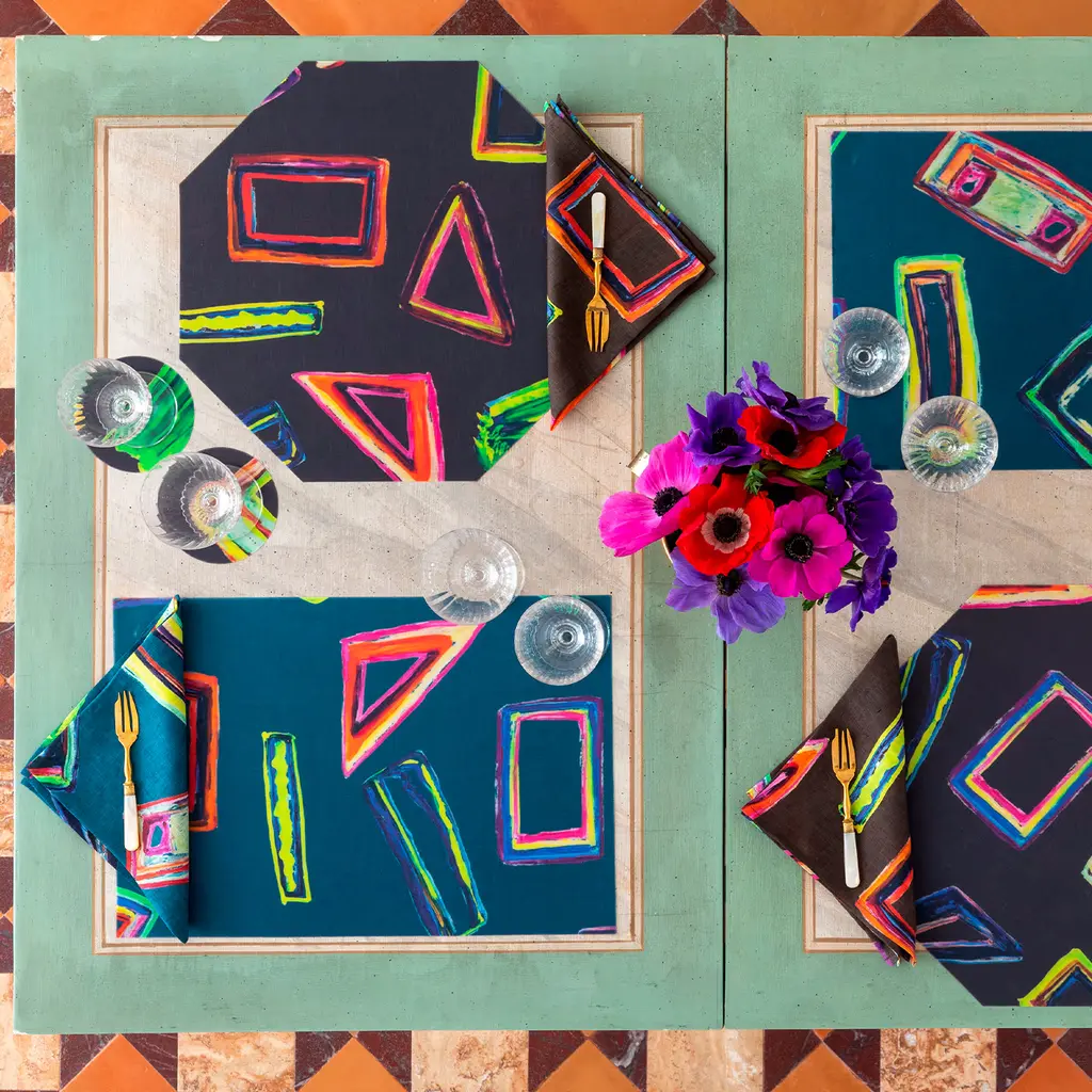 Set Of 2 Space Shapes Placemats And Napkins In Blue