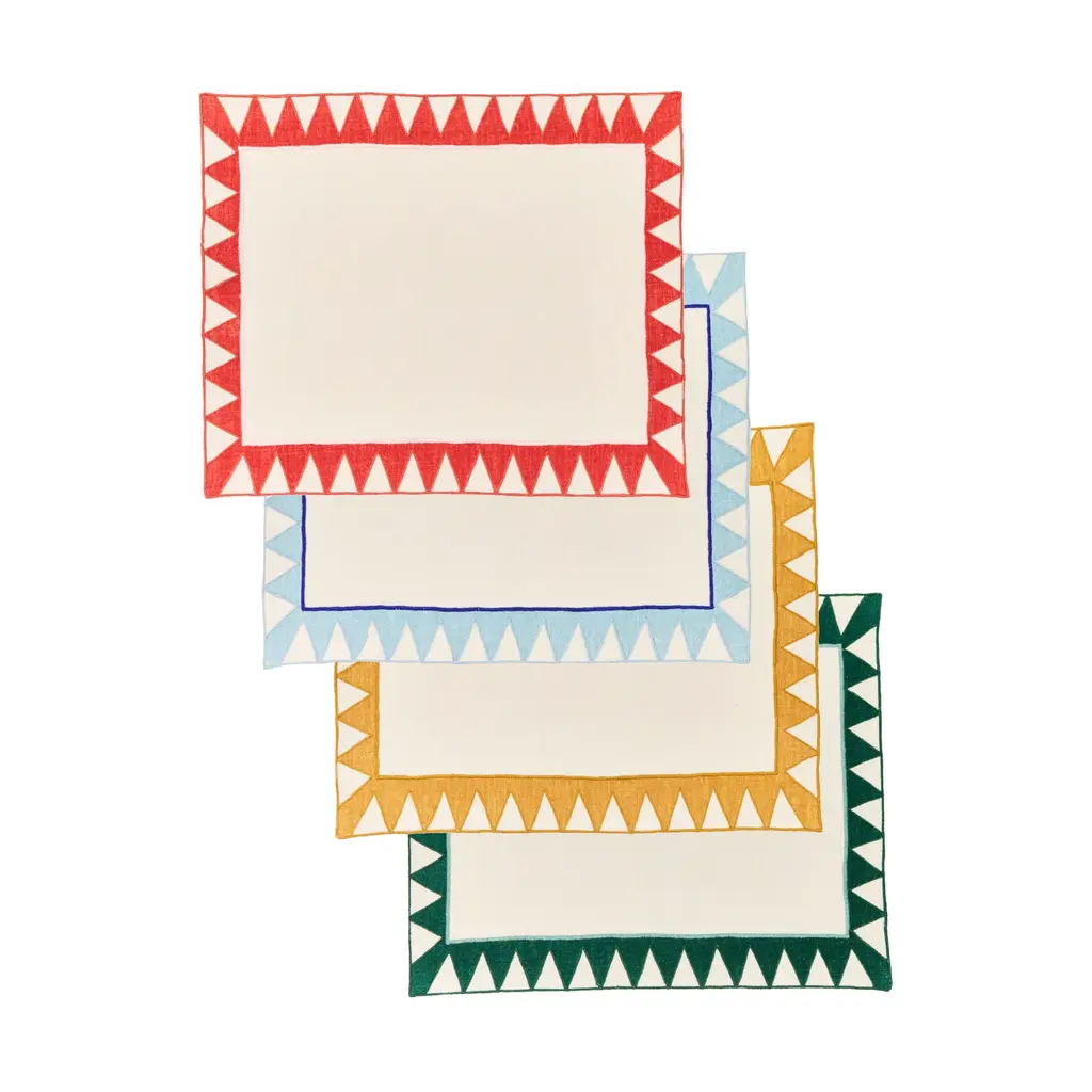 This original Luisa Longo hand-painted artwork has been digitally printed on linen, each piece is cut from a very large motif so all the mats will be different from each other, forming a unique table setting. The fabric has been embedded in an exclusive polyurethane solution with the softest peach skin feel. The placemats have an extraordinary resistance to heat, abrasions, and stains, light and totally flexible, can be washed just with a drop of water and soap.
