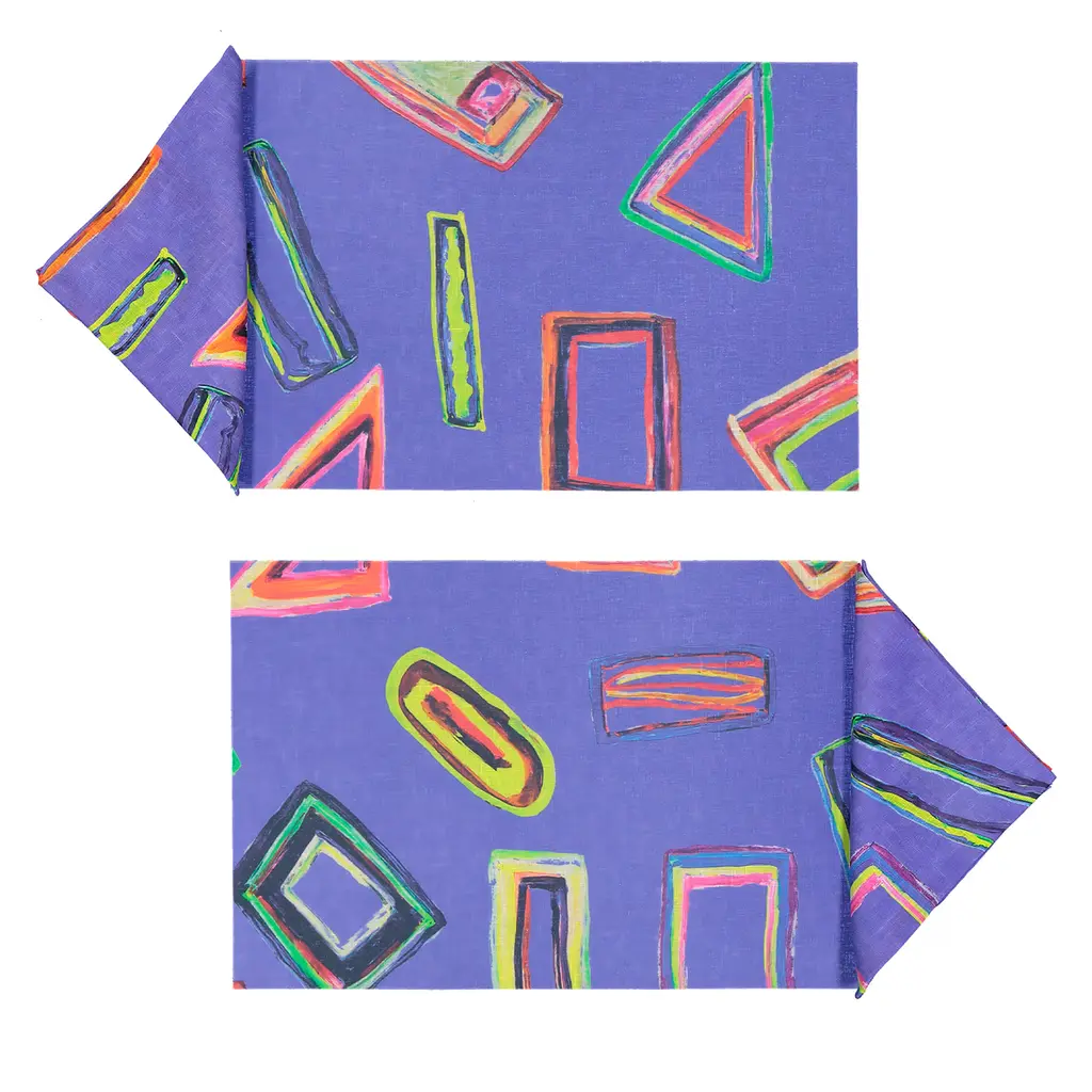Set Of 2 Space Shapes Placemats And Napkins In White