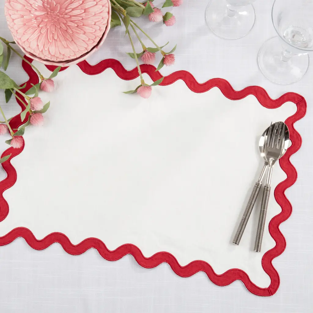 This set of 100% Linen Eco Scallop Border Placemats blends earth-friendly fabric with a playful border. A stylish way to dress up casual meals or everyday dining.