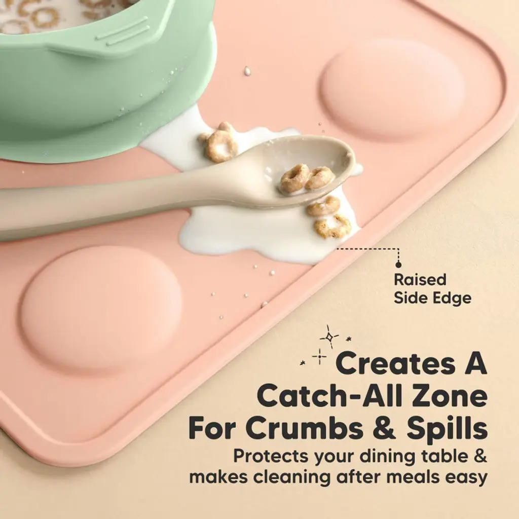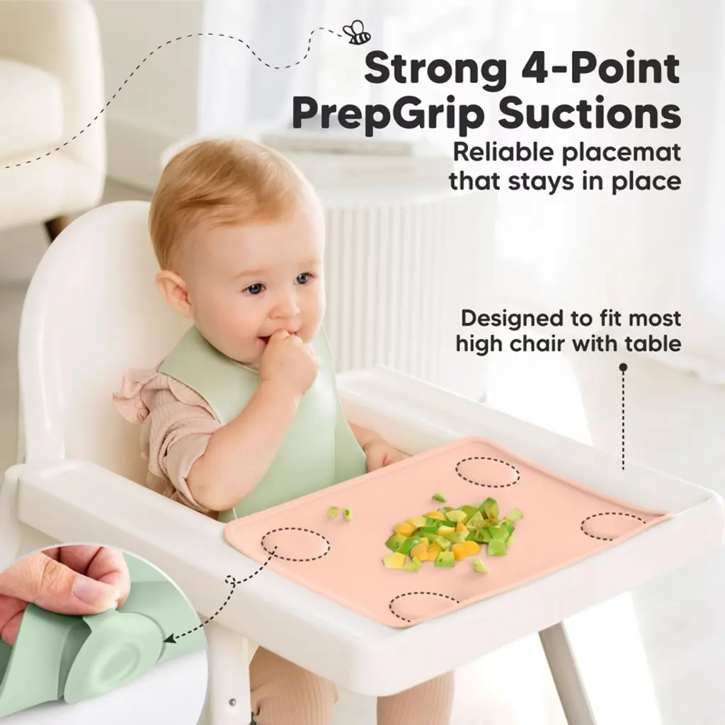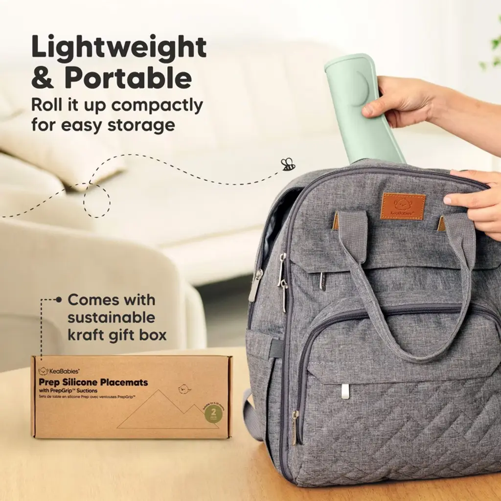 Say goodbye to messy meals with KeaBabies 2-Pack Prep Silicone Placemats! Sized at 12" x 9", they fit most high chairs and dining tables. With a non-slip design, the silicone table mat keep dining fun and stress-free anywhere! The raised edges catch spills and crumbs, making cleanups quick and easy.